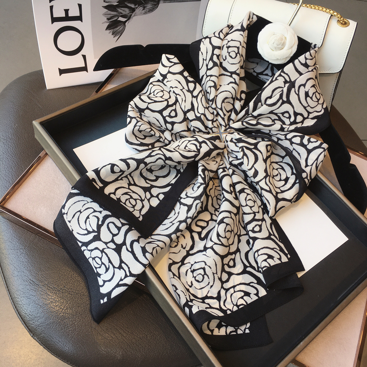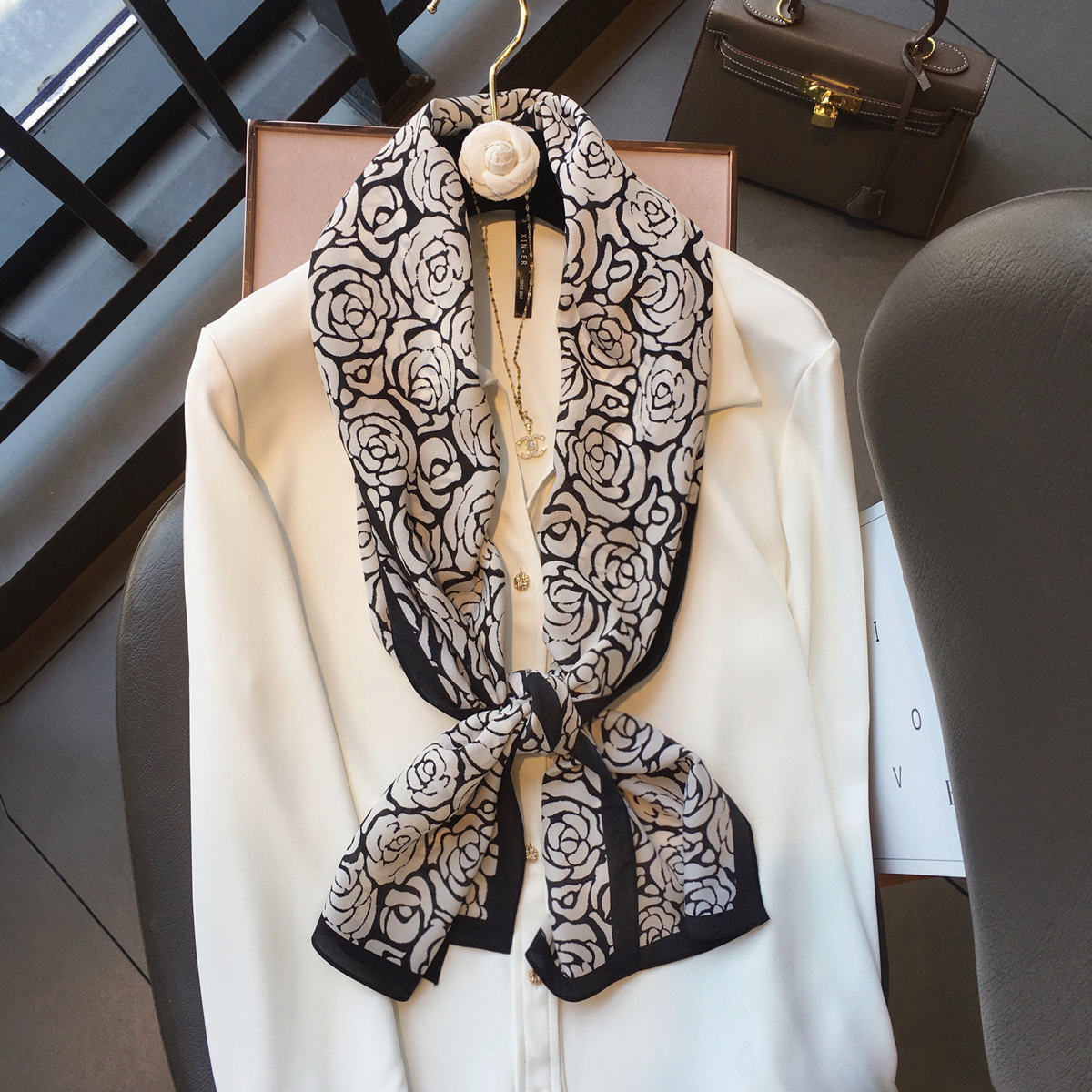 100%桑蚕丝围巾法式玫瑰真丝双绉丝巾长款真丝飘带杭州丝绸春秋季