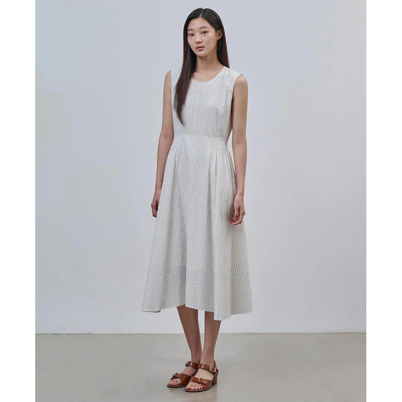 BEANPOLE滨波 夏季女士度假优雅圆领竖条纹无袖连衣裙长裙