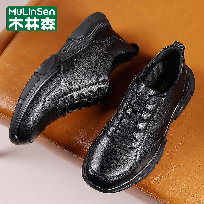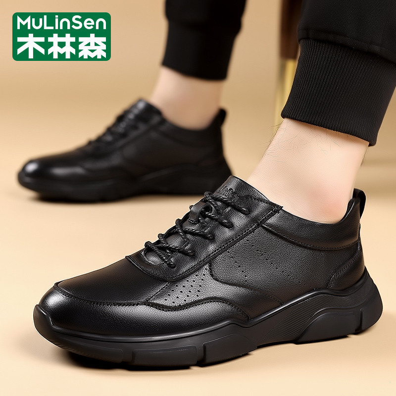 木林森男鞋春季2026年新款运动休闲头层牛皮商务爸爸软底通勤皮鞋