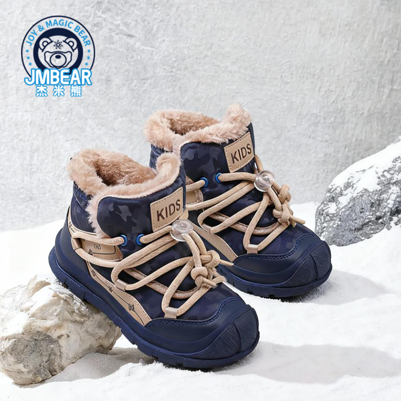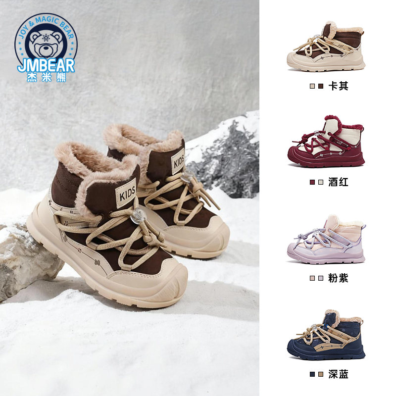 杰米熊童鞋儿童棉鞋冬季保暖加绒男童运动鞋户外加厚防滑雪地靴女