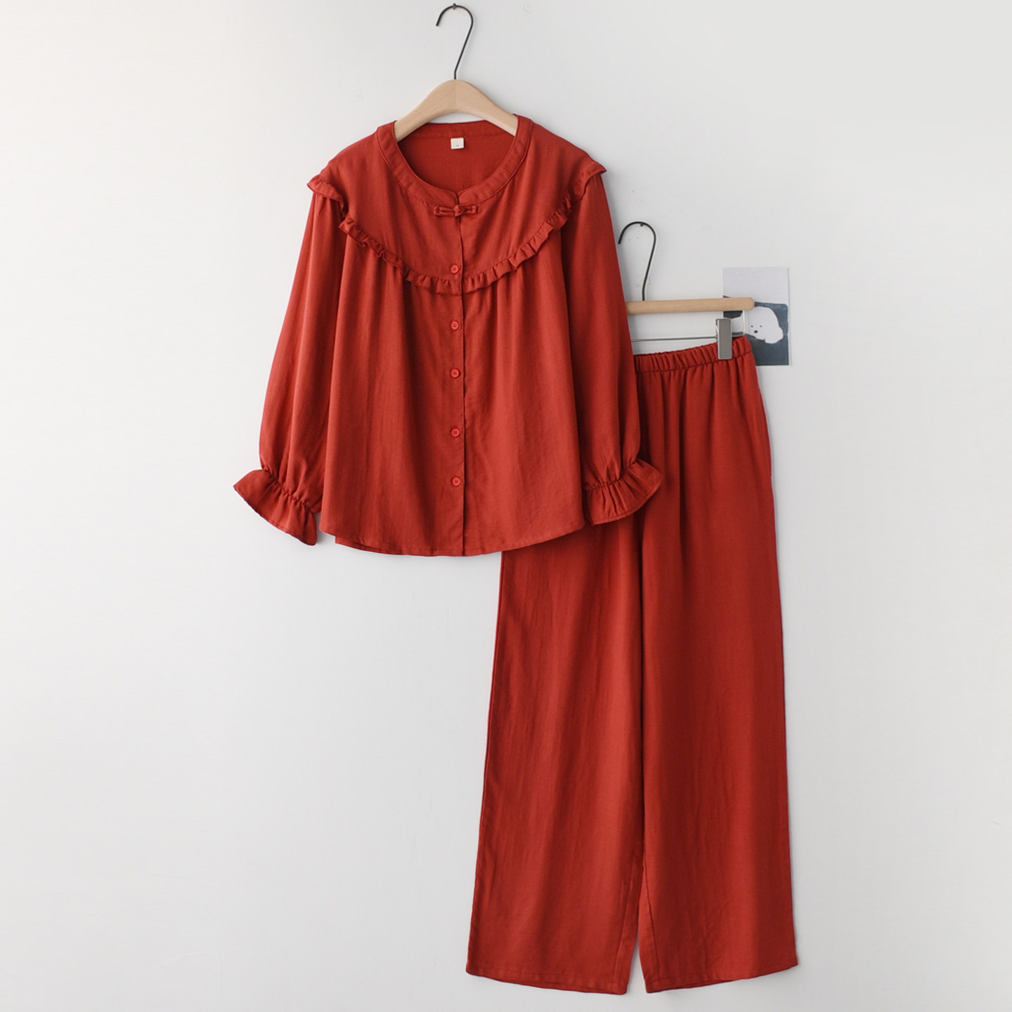 女竹纤维棉红色本命年春夏家居服