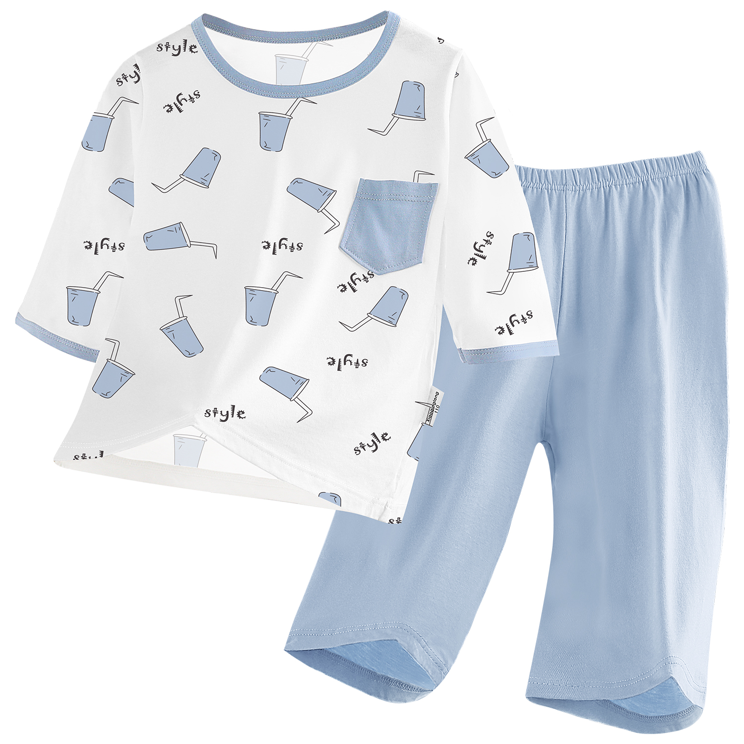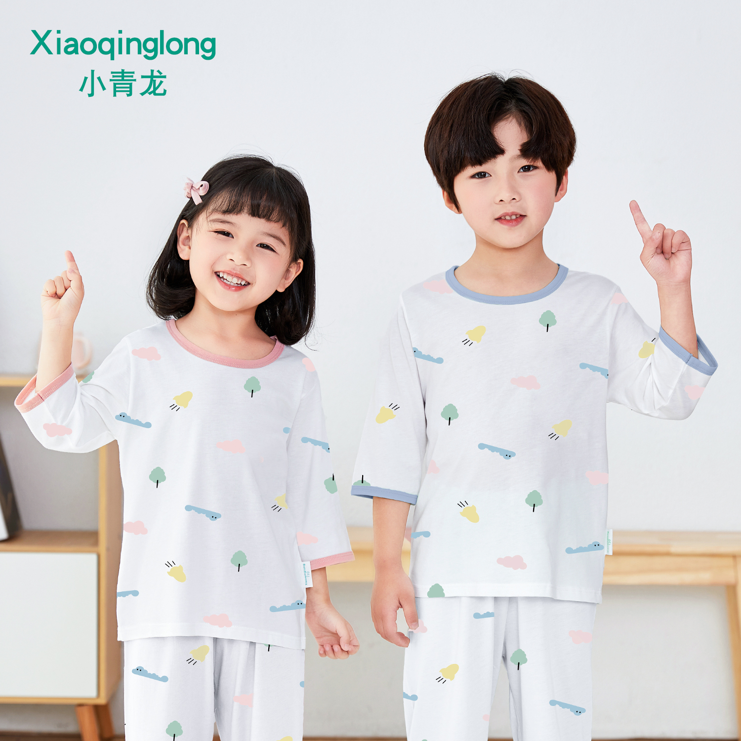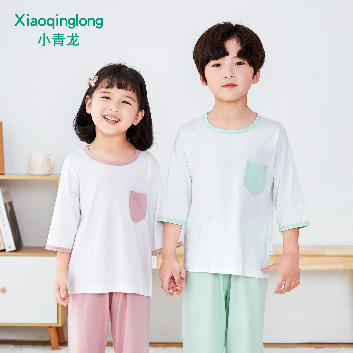 小青龙春夏季儿童睡衣男童女童七分袖莫代尔薄款空调服套装中大童