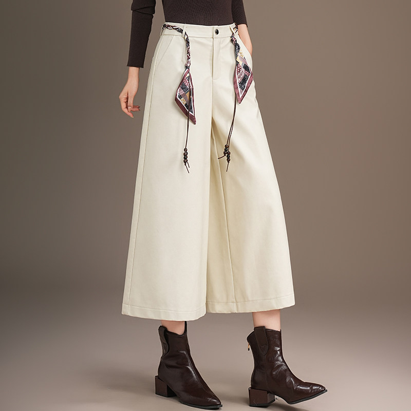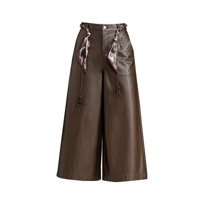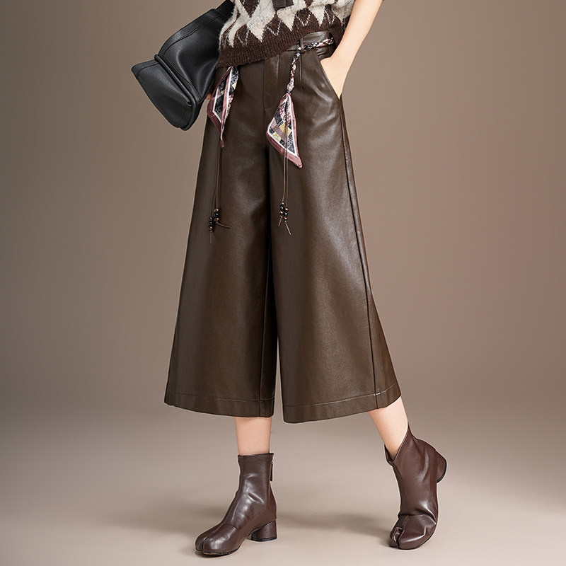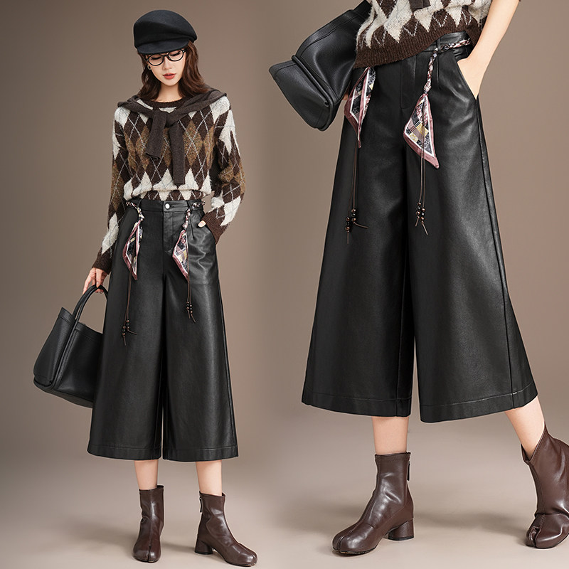 七分皮裤阔腿裤女2025年秋冬季新款时尚直筒休闲宽松裤子pu皮中裤