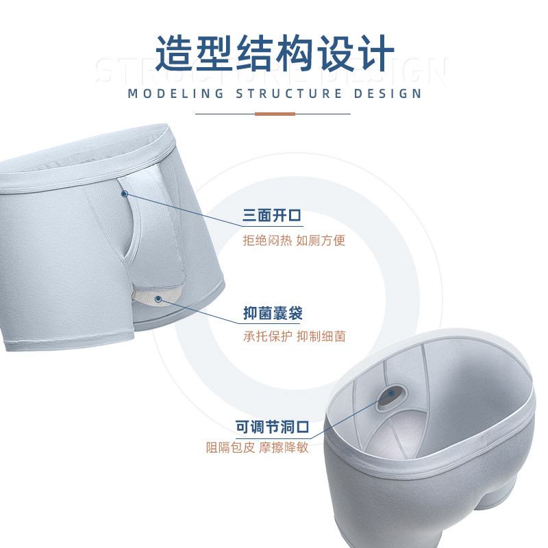 男士内裤枪弹分离平角裤衩包皮阻复男生囊袋四角短裤透气抗菌薄款