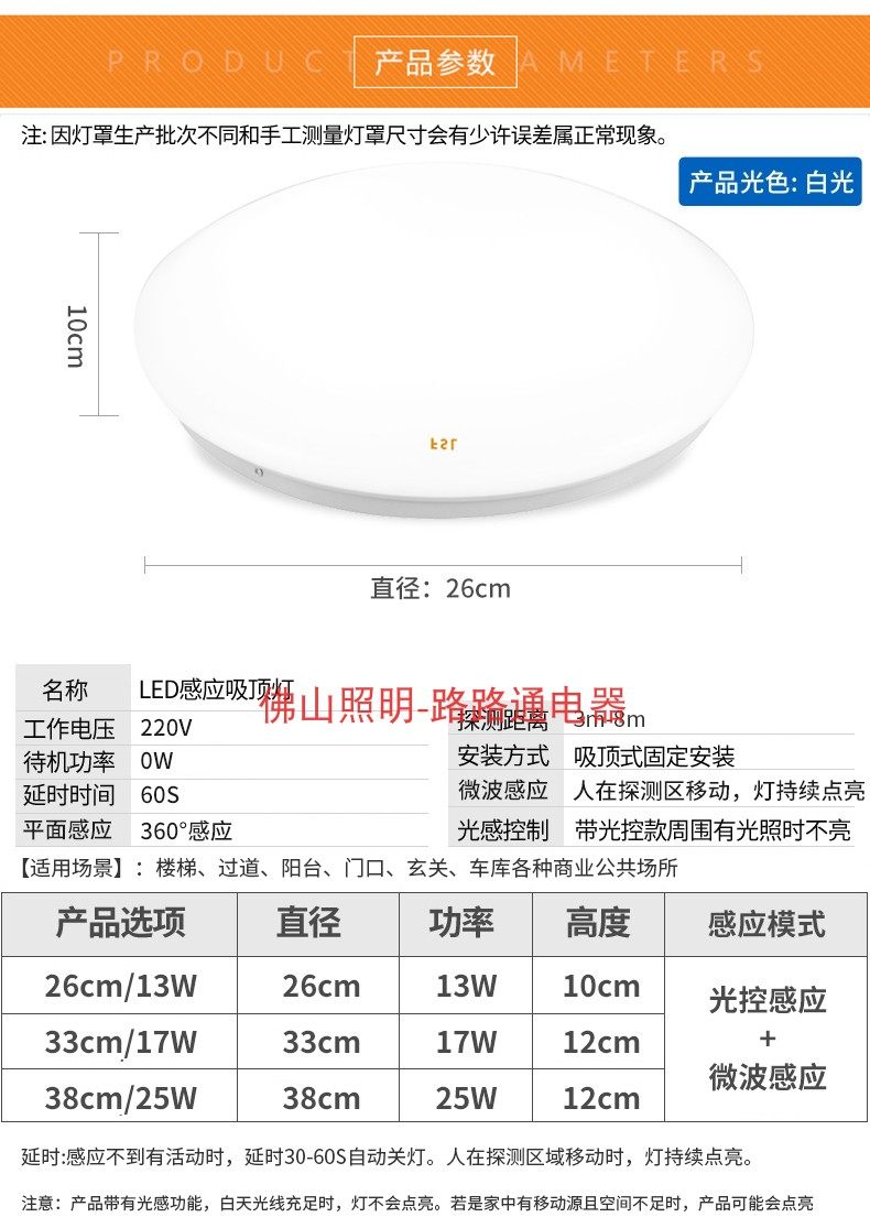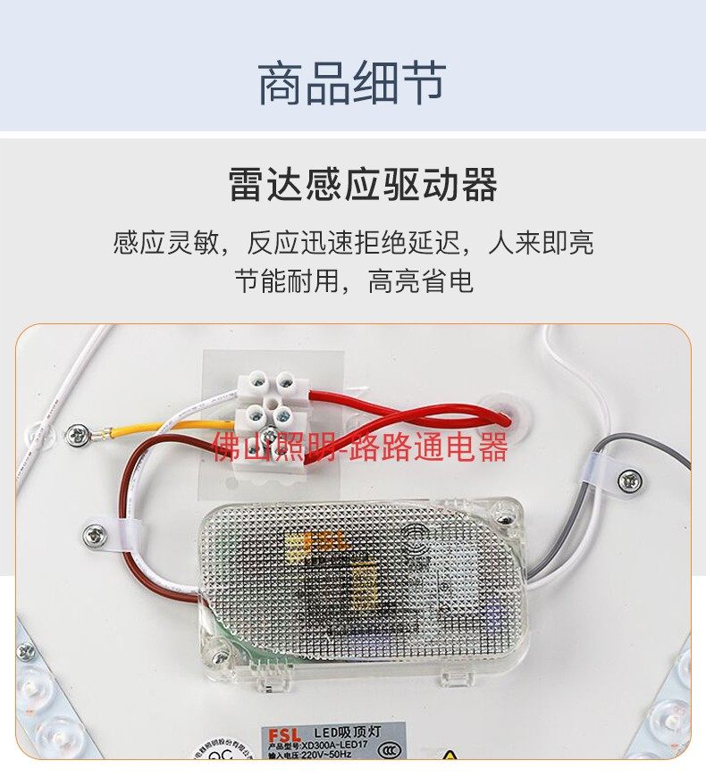 佛山照明微波感应吸顶灯14w18w25w雷达红外人体感应 车库过道走廊