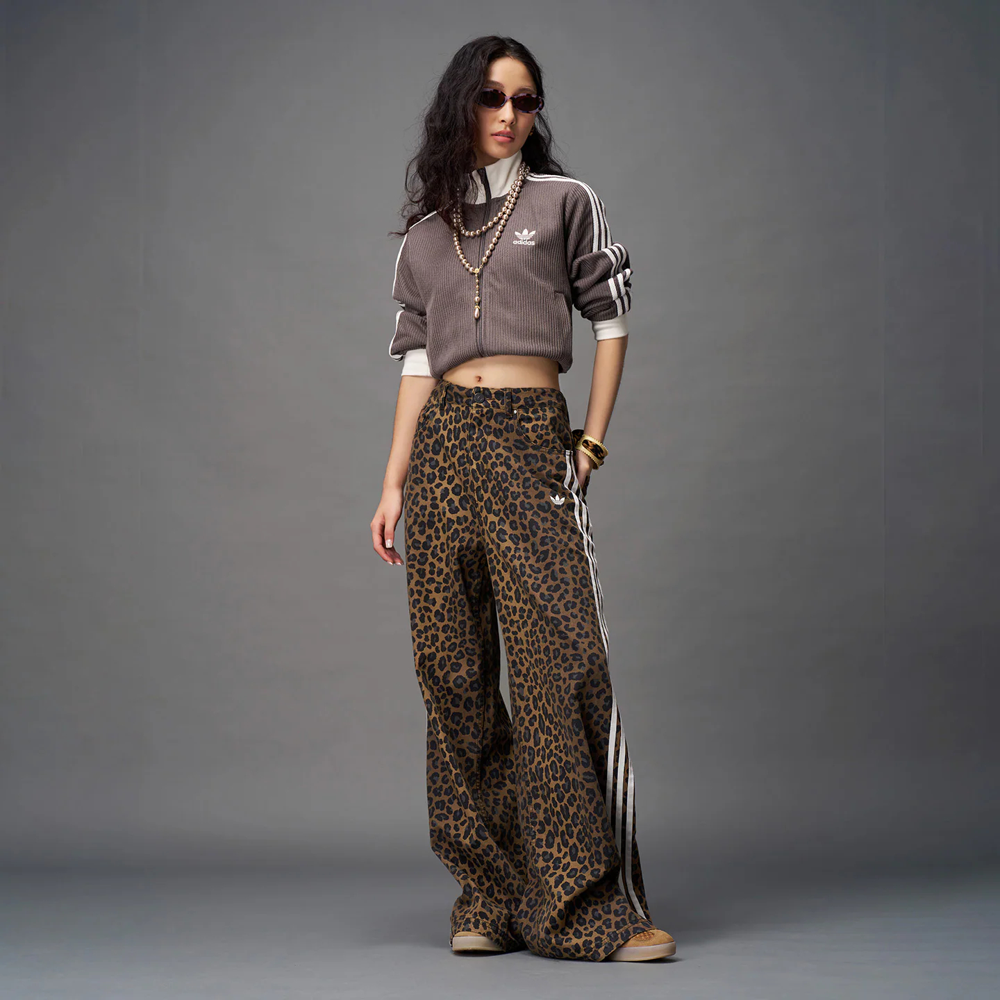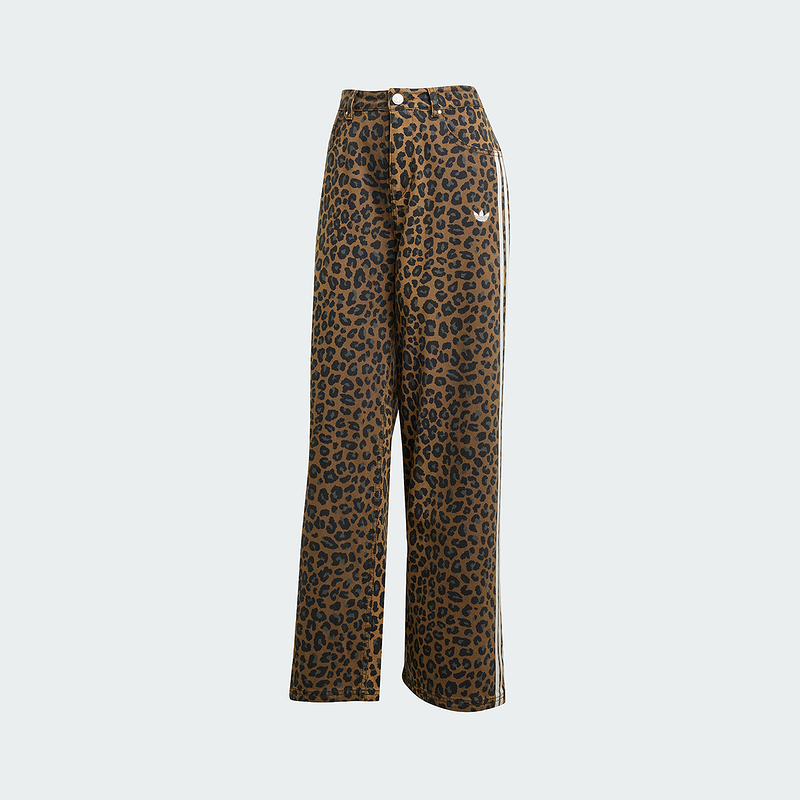 adidas阿迪达斯三叶草三条纹豹纹印花牛仔裤冬女DENIM长裤 KA2680