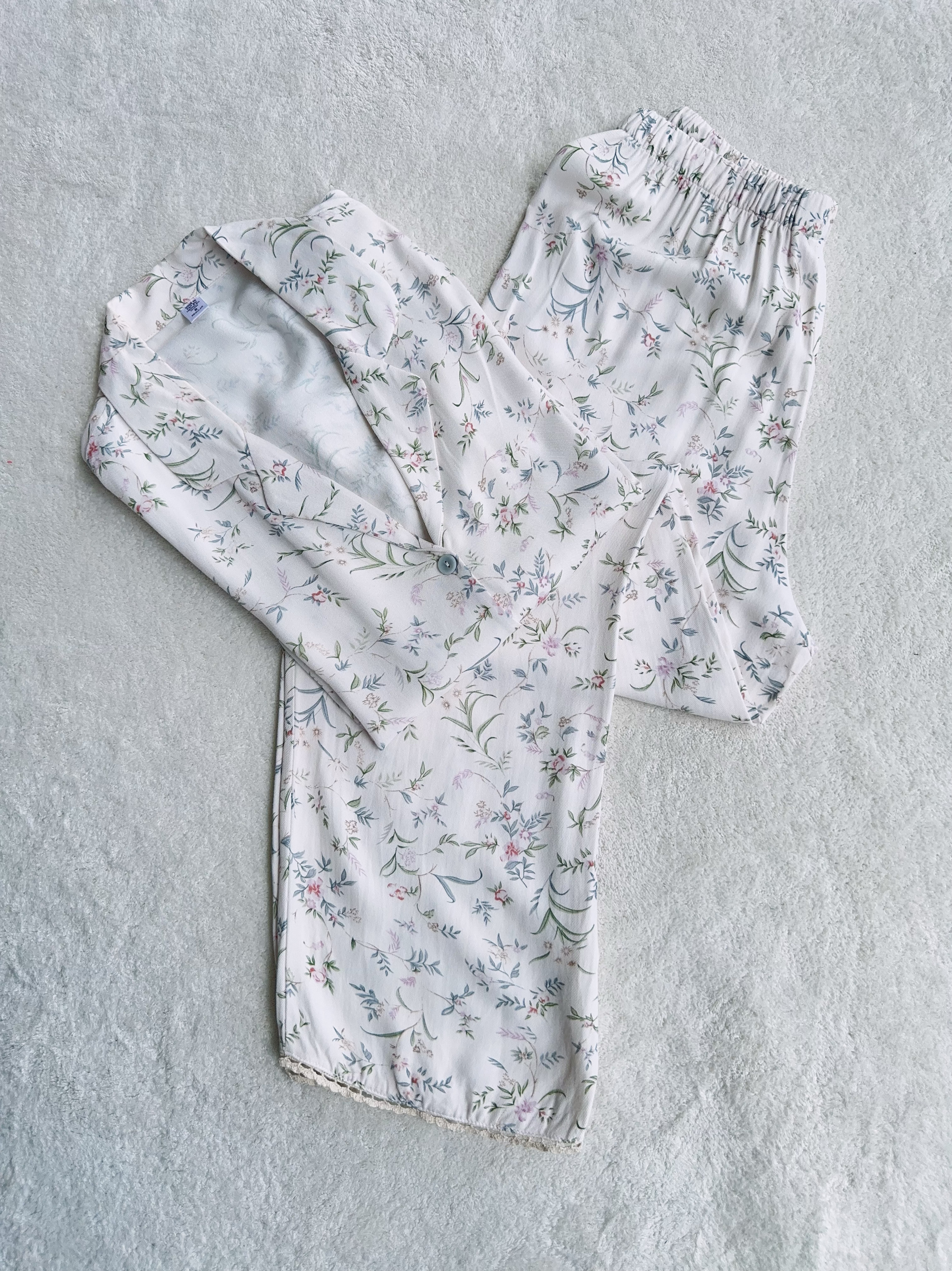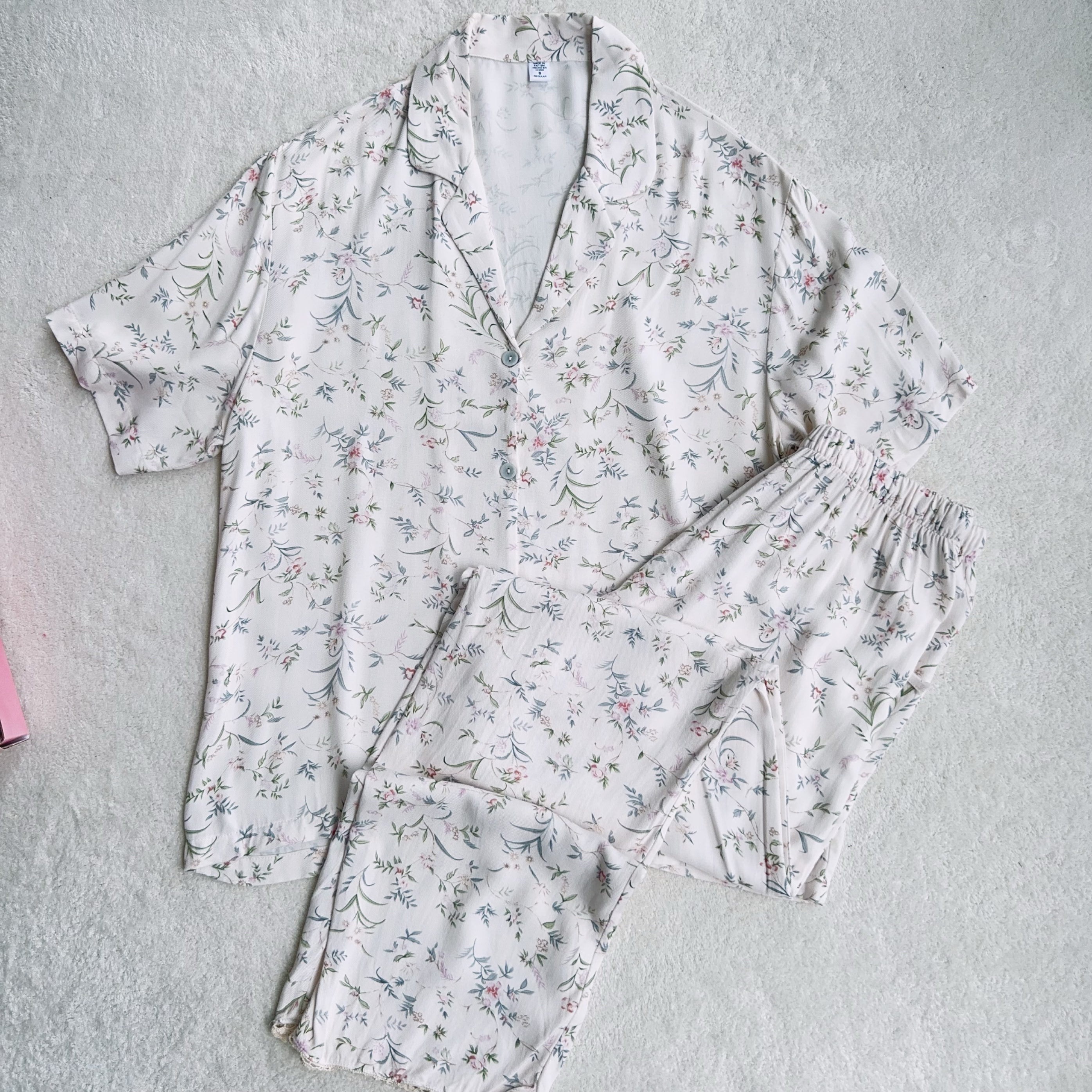 西班牙o家 女士夏季小蔷薇花卉短袖长裤复古小碎花柔软人棉睡衣