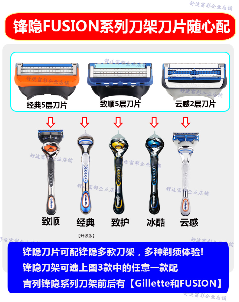 吉列锋隐5五层刀片剃须刀头刮胡刀Fusion手动致顺云感替换刀头