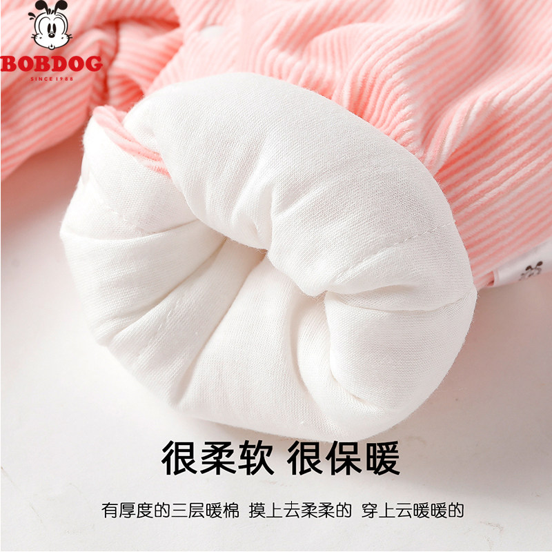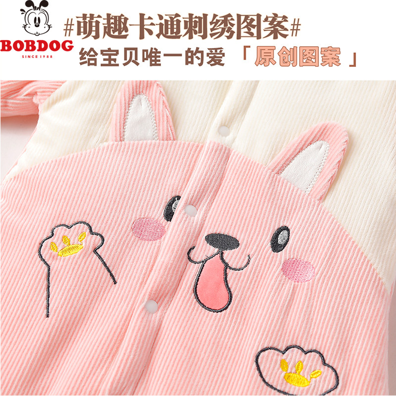 巴布豆婴儿连体衣春秋加厚夹棉刺绣卡通宝宝爬服哈衣冬装保暖衣服