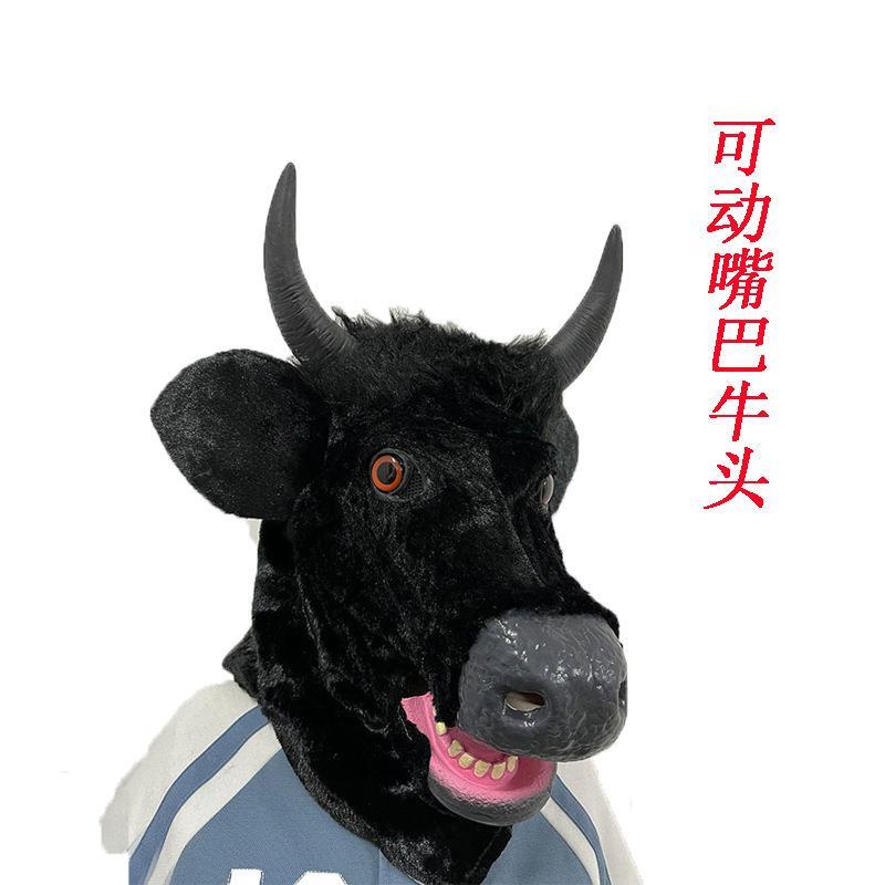 万圣节恐怖动嘴巴牛头面具牛魔王面具牛角骷髅动物影视周边装扮道