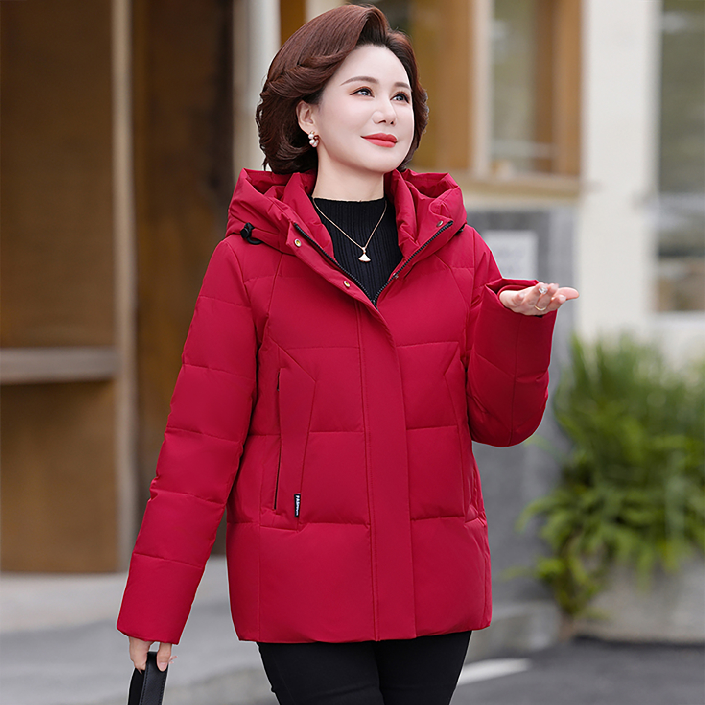 中老年妈妈羽绒服女2025新款冬装纯色白鸭绒黑色短款加厚保暖外套