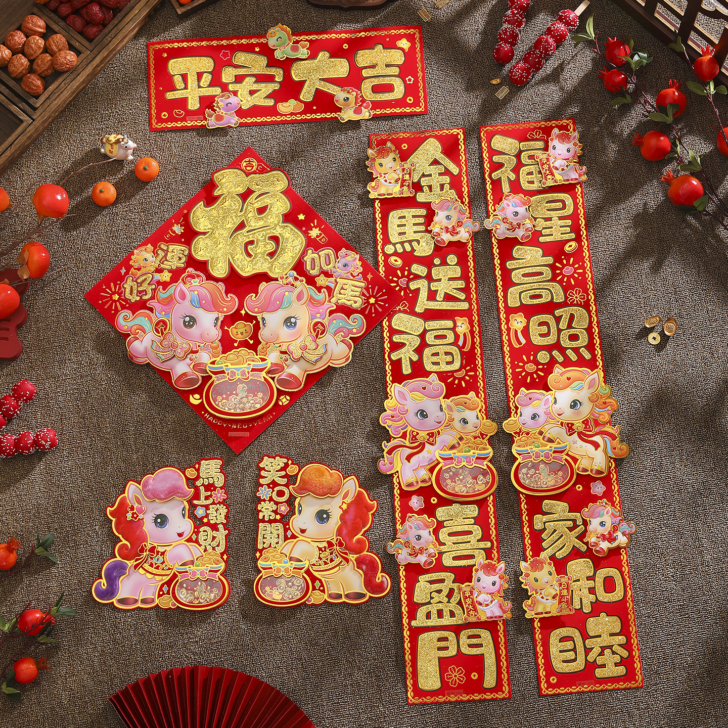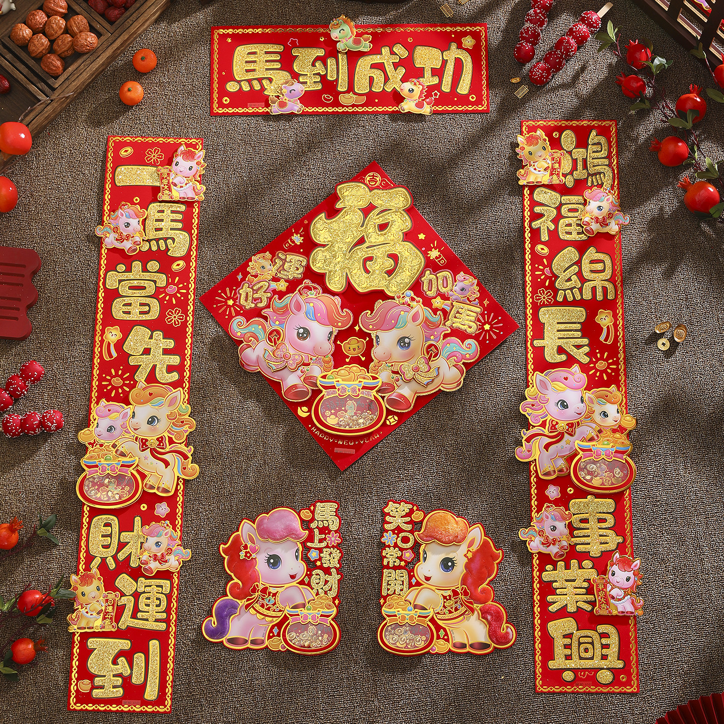 2026马年立体植绒卡通对联福字贴