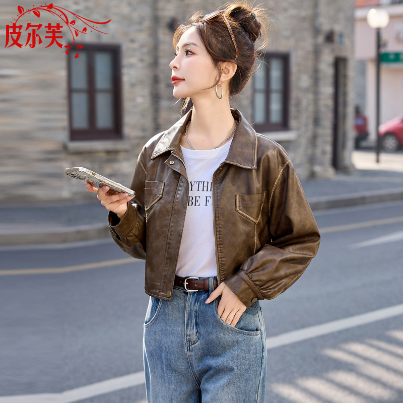 今年流行咖色皮衣夹克外套女春秋2024新款复古港风休闲小个子上衣
