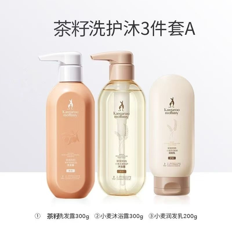 袋鼠妈妈准孕妇洗护套装洗发水沐浴露护发素天然准孕期护肤品