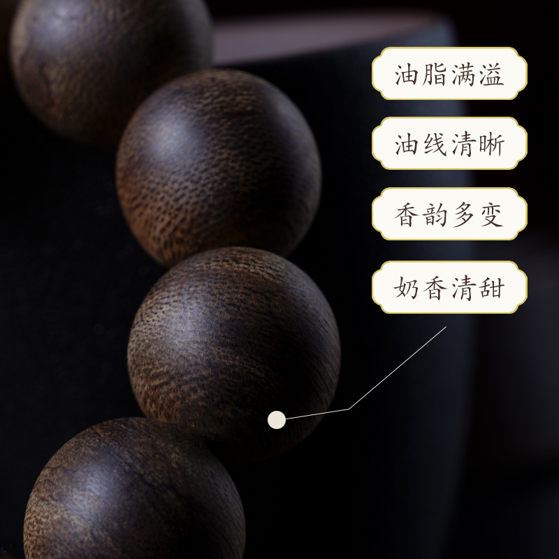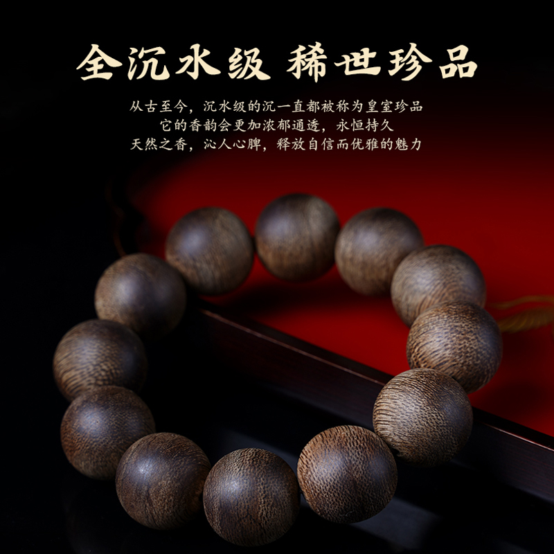保真正区达拉干沉香手串沉水级黑油老料手链单圈文玩佛珠收藏送礼