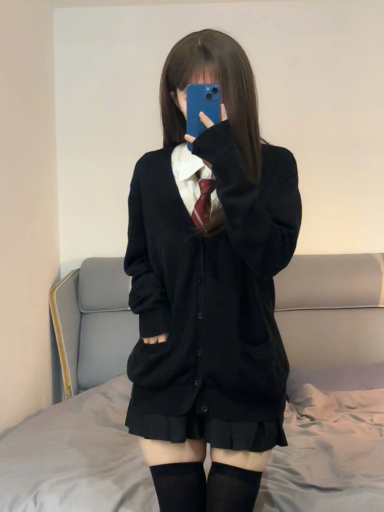 学院风毛衣外套女开衫JK制服秋冬日系外搭宽松纯色薄款长袖针织衫