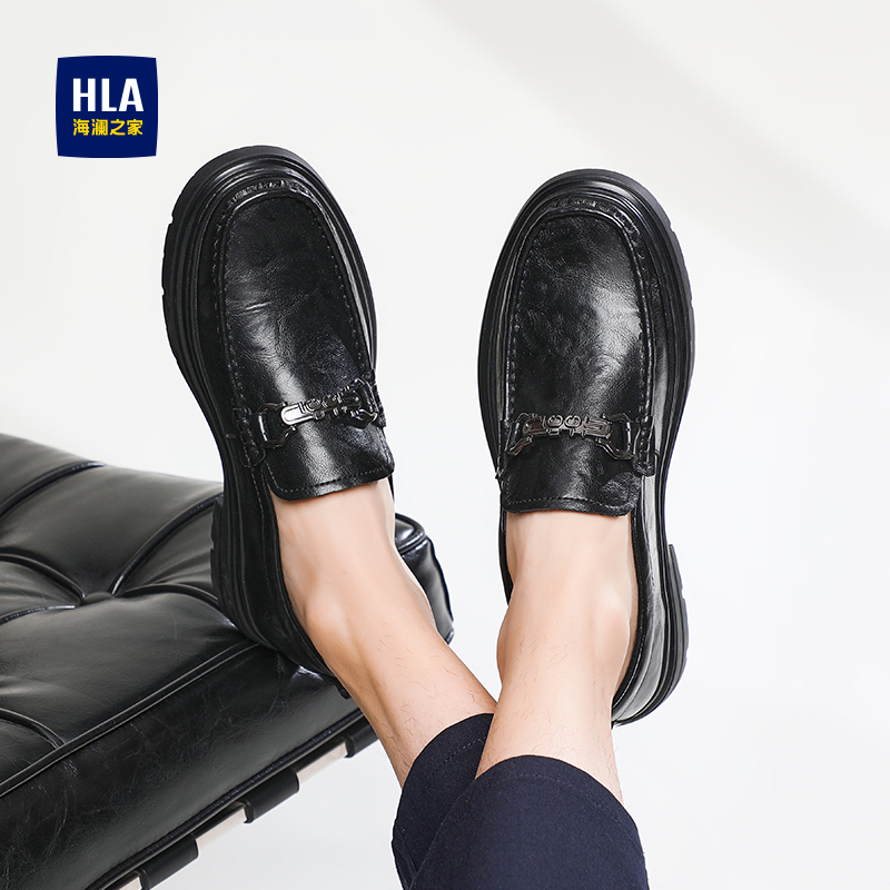 HLA/海澜之家男鞋新款夏季时尚套脚休闲皮鞋马衔扣百搭厚底乐福鞋