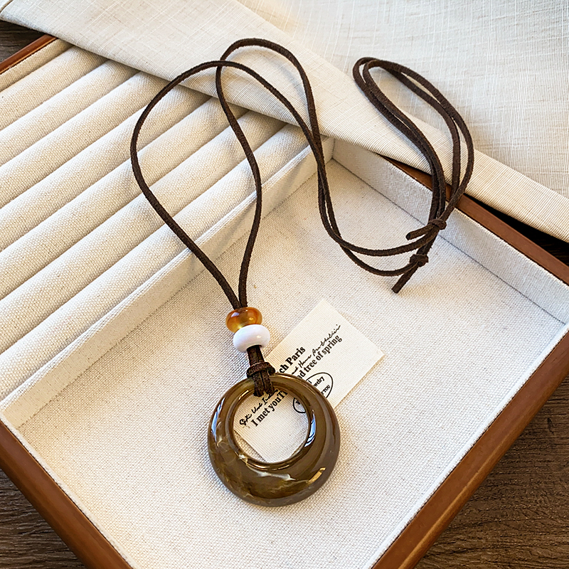 复古美拉德长款棕色圆环吊坠项链女高级感轻奢小众毛衣链脖子配饰