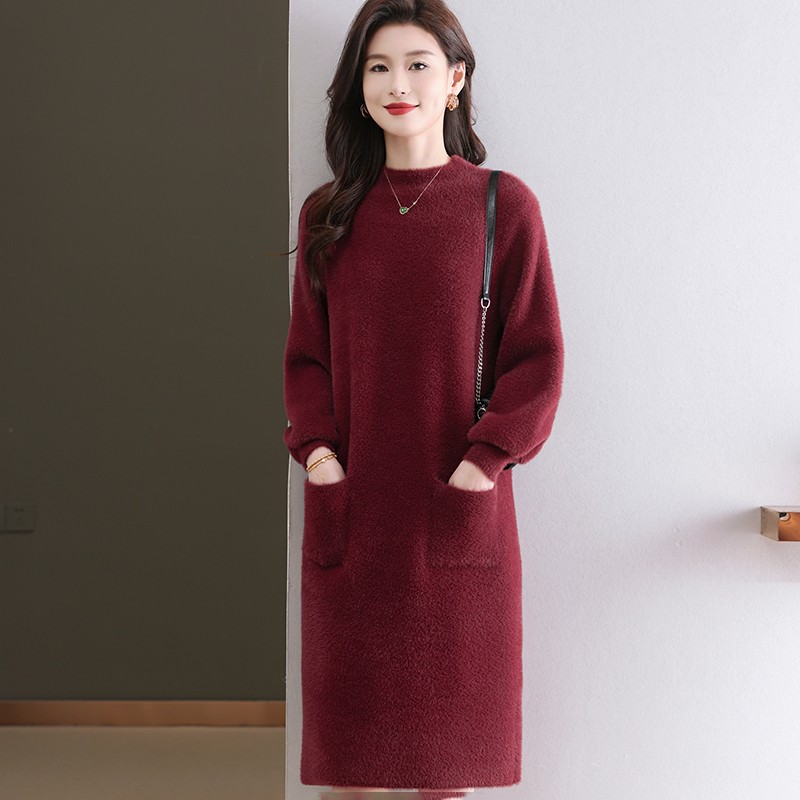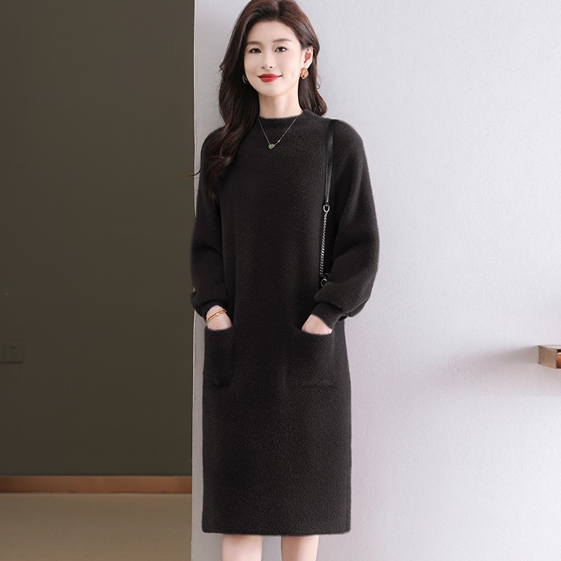 半高领针织毛衣连衣裙女秋冬2025新款内搭宽松配大衣中长款打底裙