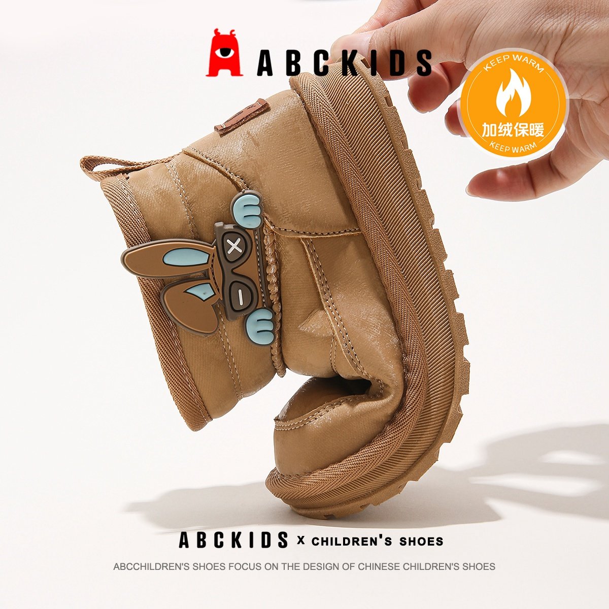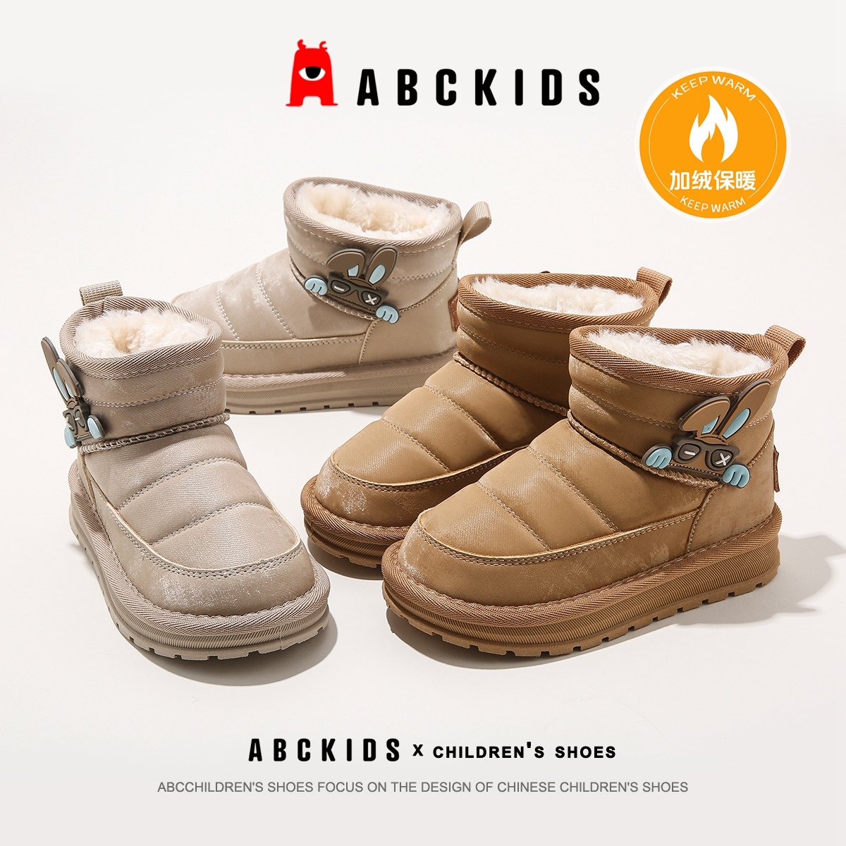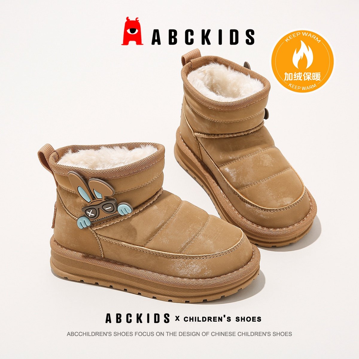 ABCkids童鞋女童雪地靴加绒加厚儿童棉鞋冬季新款卡通男童棉靴子