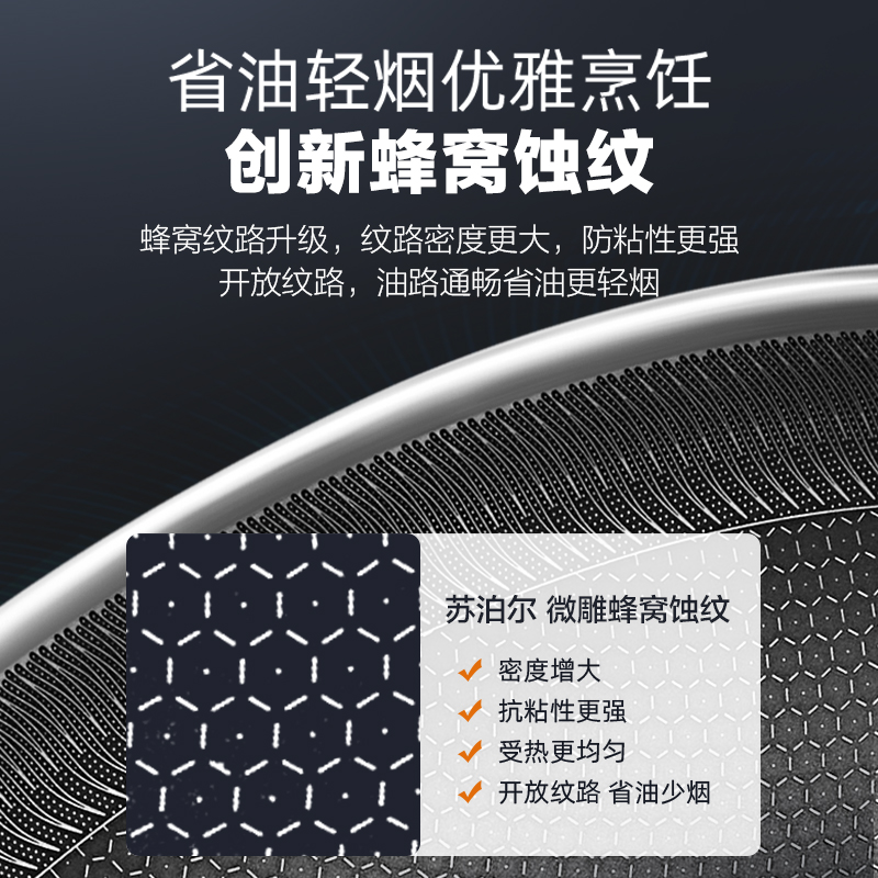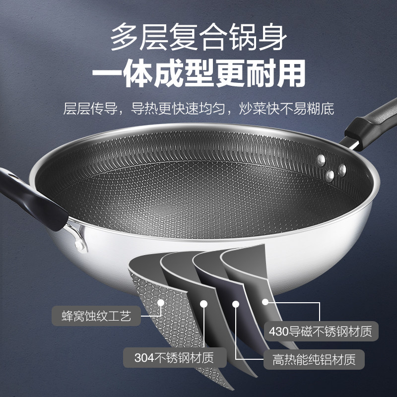 苏泊尔不粘锅家用炒锅304不锈钢蜂窝炒菜锅燃气灶通用官方旗舰店