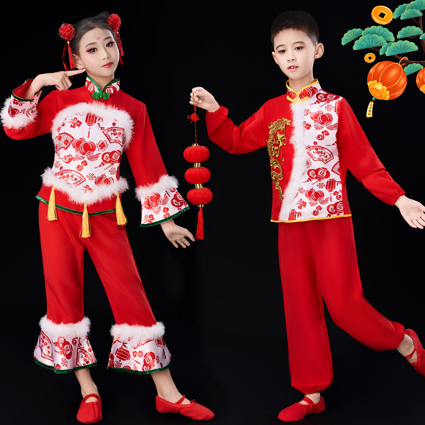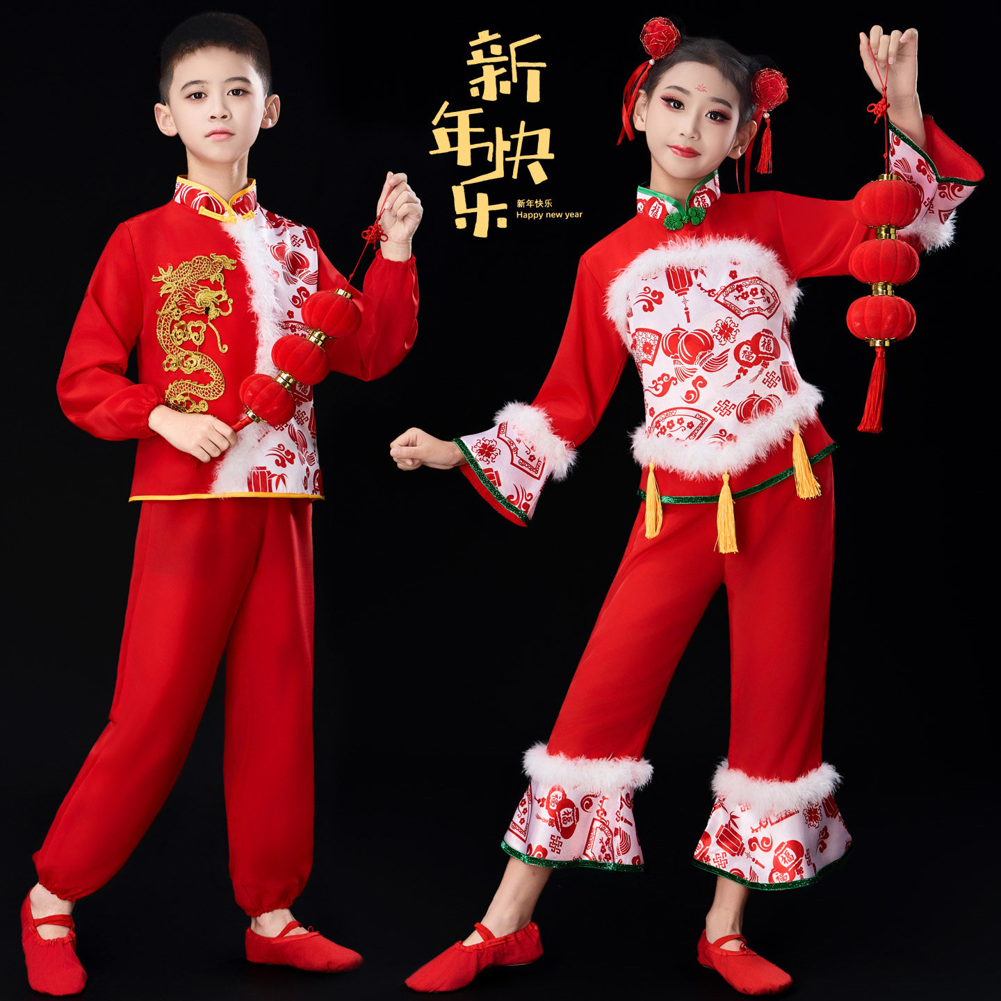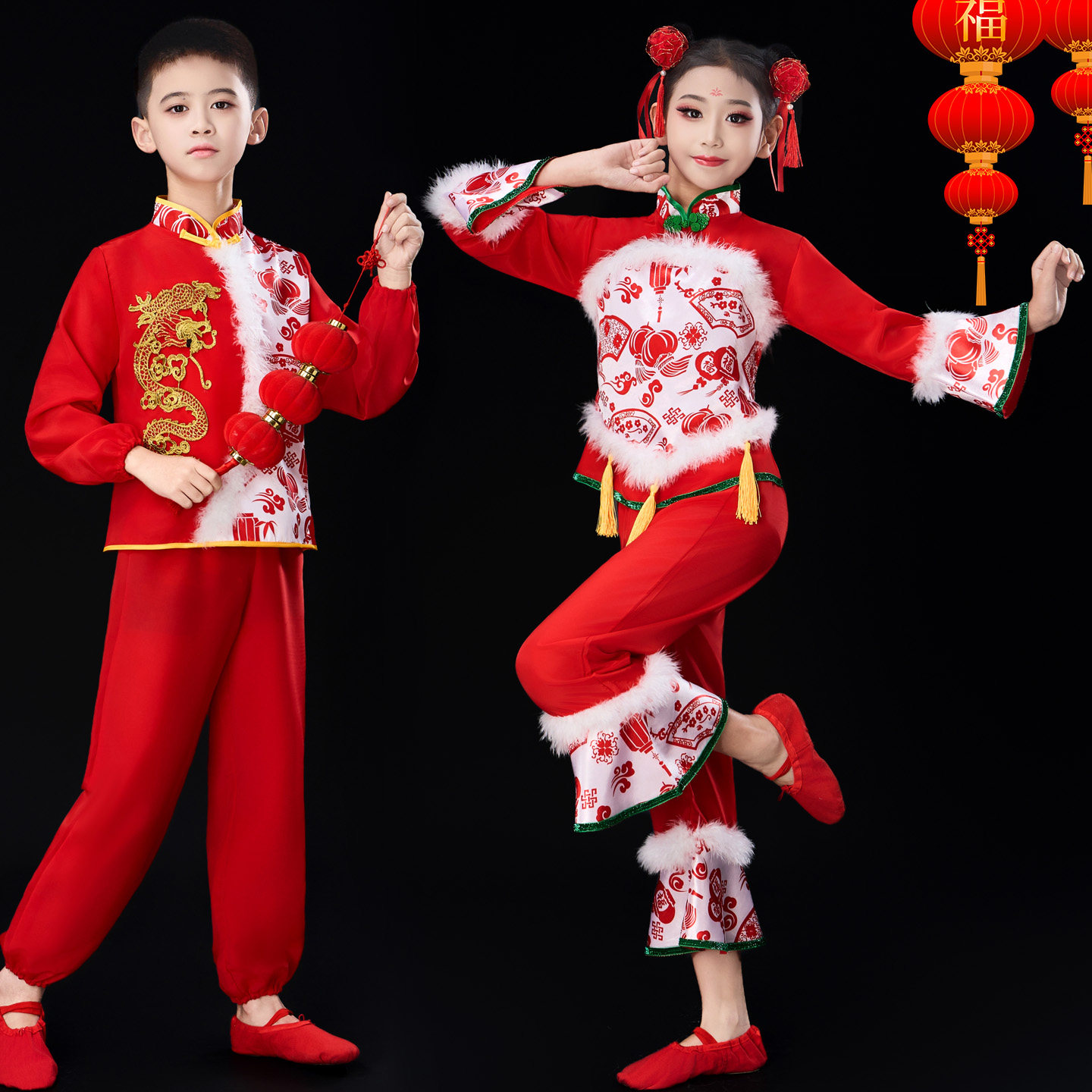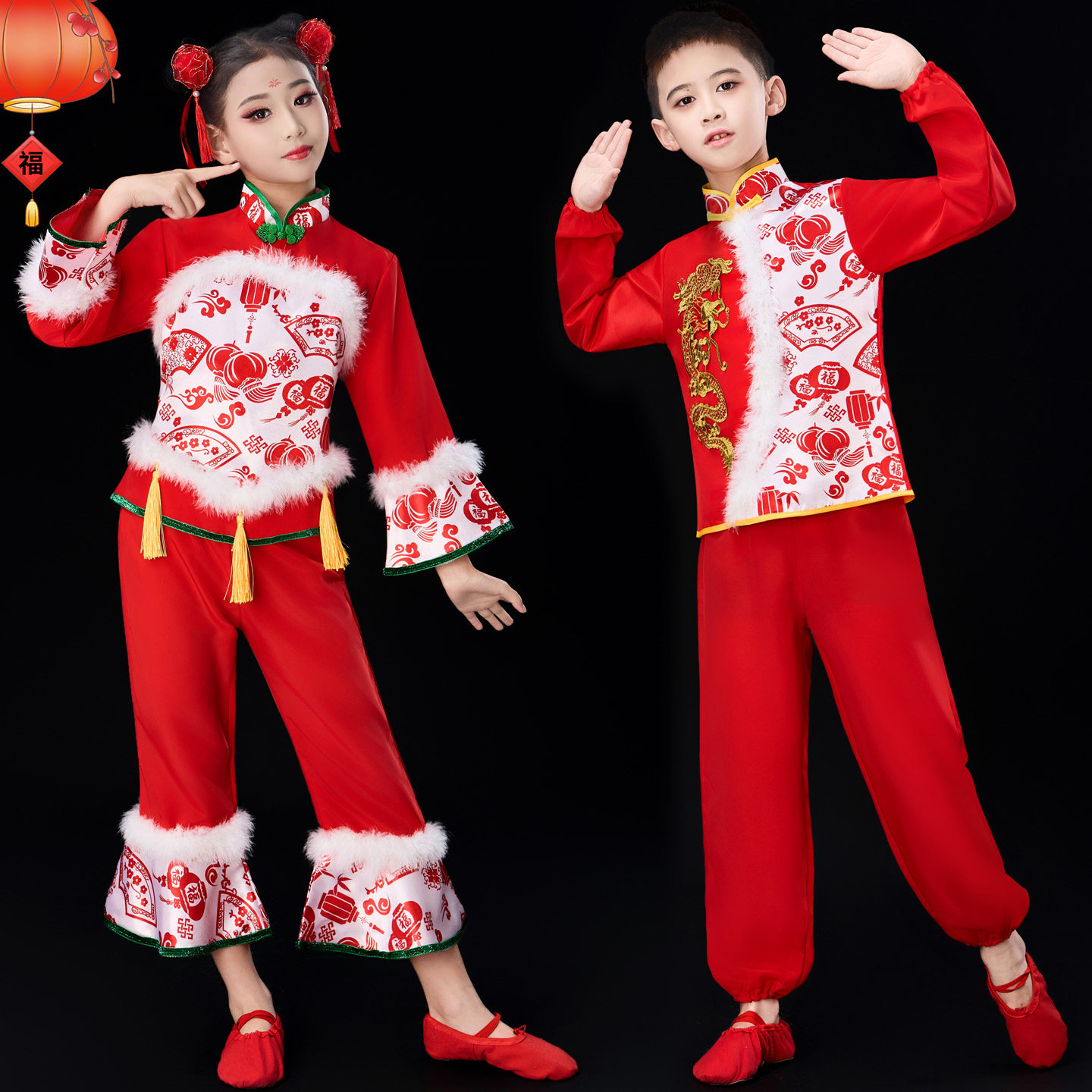 元旦儿童秧歌春节喜庆演出服灯笼开门红幼儿手绢舞民族扇子舞蹈服