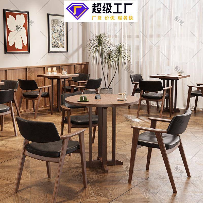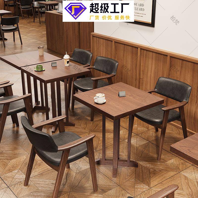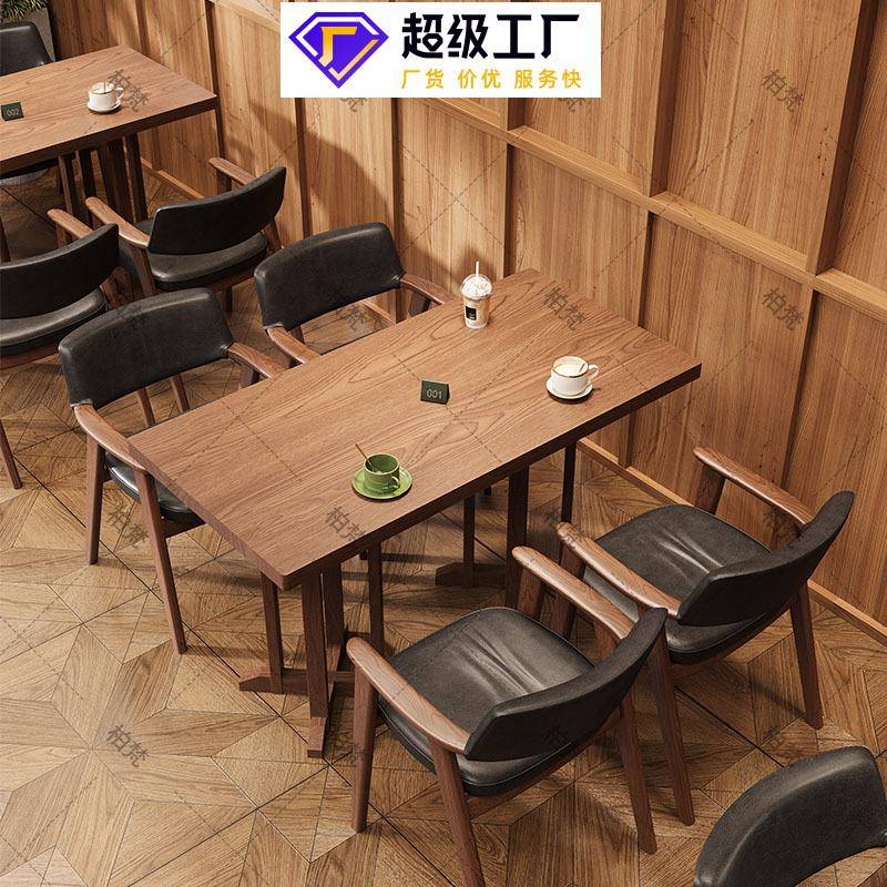 中古商用咖啡桌和椅子组合甜品烘焙咖啡店桌子复古火锅店实木桌椅