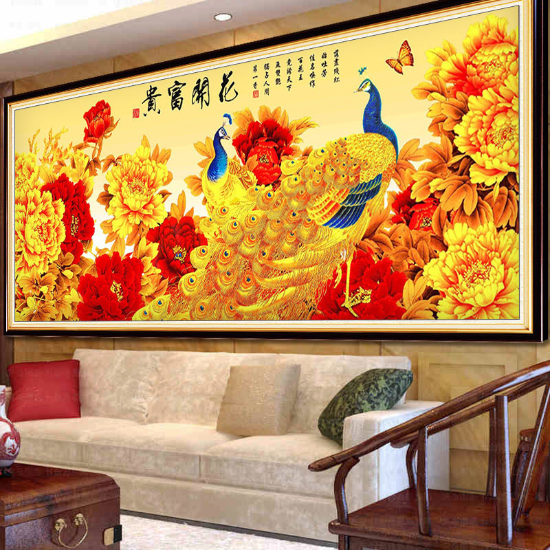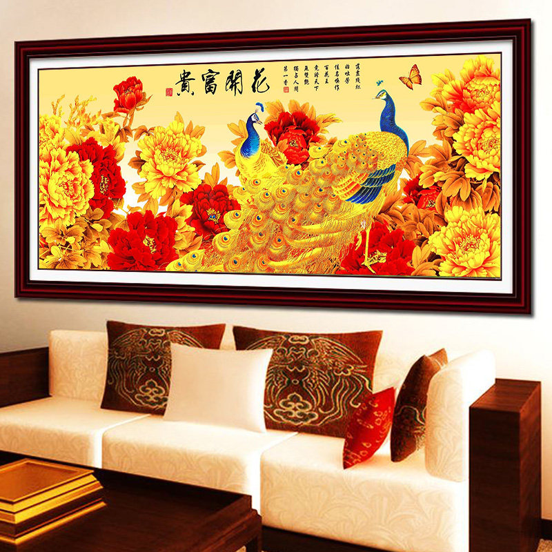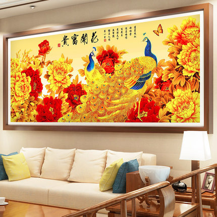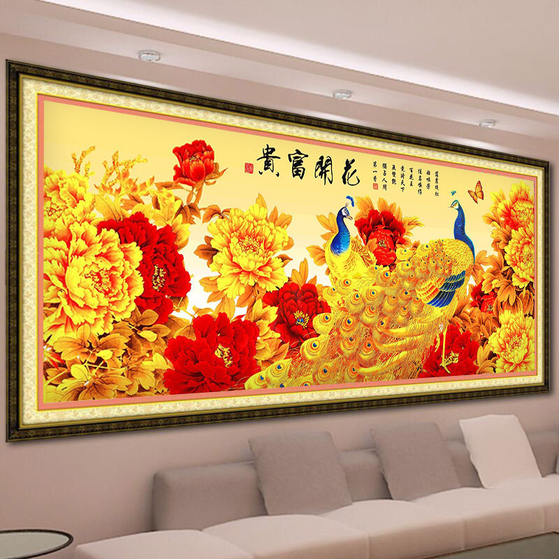 2026年钻石画满钻花开富贵客厅中国风5d贴砖石十字绣2025新款孔雀