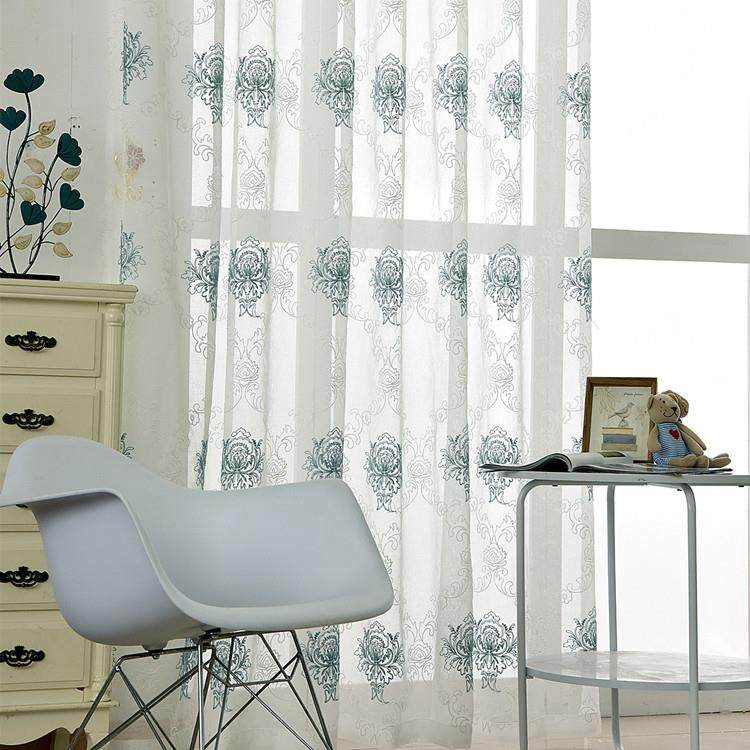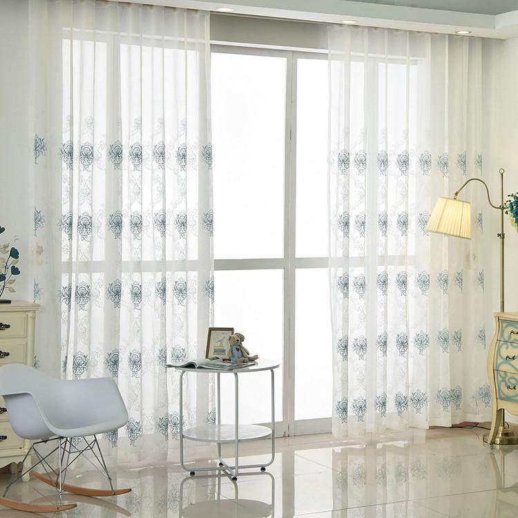 高档蓝色现代欧式客厅卧室定做成品遮光窗帘阳台刺绣花窗纱定制*J