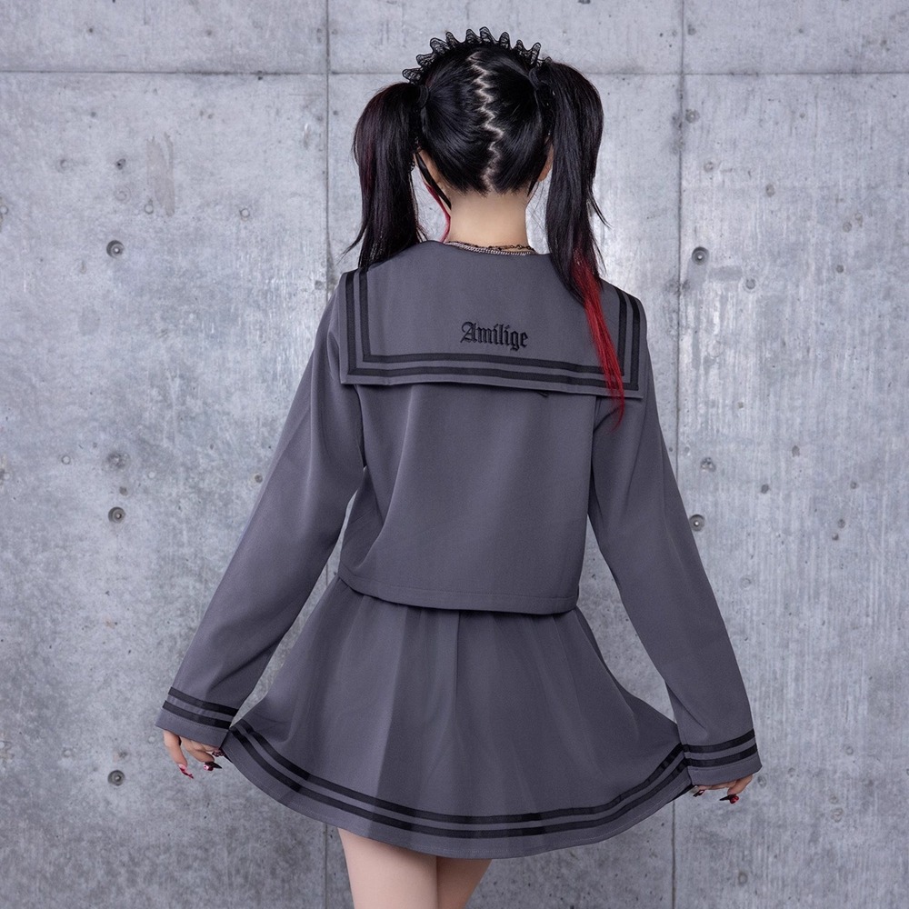 日系学院风海军领上衣百褶裙套装