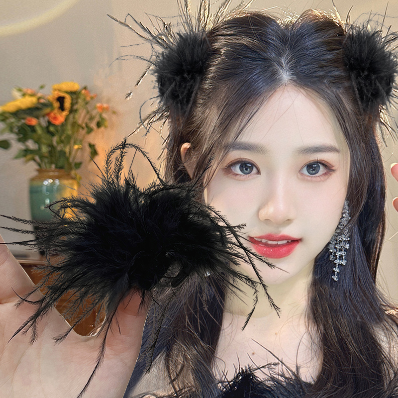 小号羽毛抓夹女时尚高级感鸵鸟毛毛发夹后脑勺半扎发鲨鱼夹子头饰