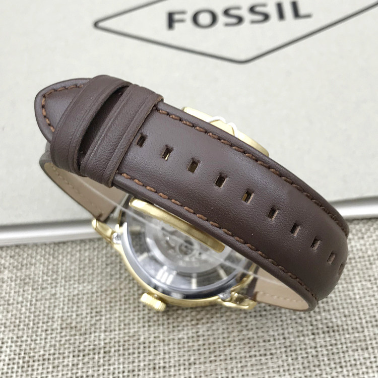 FOSSIL手表真皮表带镂空机械表