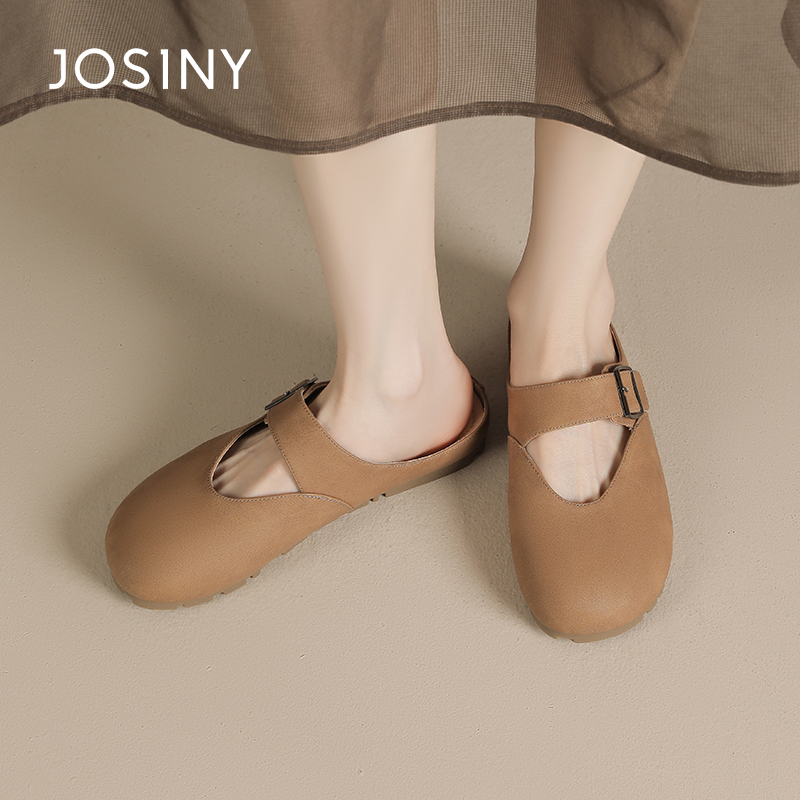 卓诗尼2025年秋季新款穆勒鞋女平底包头凉拖鞋外穿勃肯鞋单鞋凉鞋