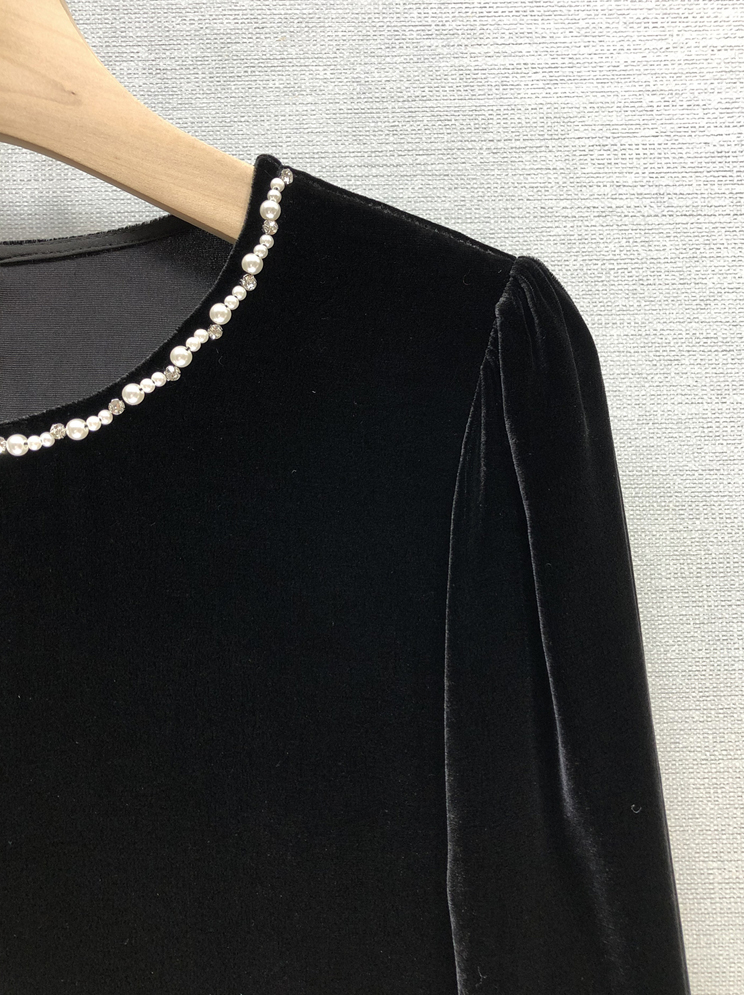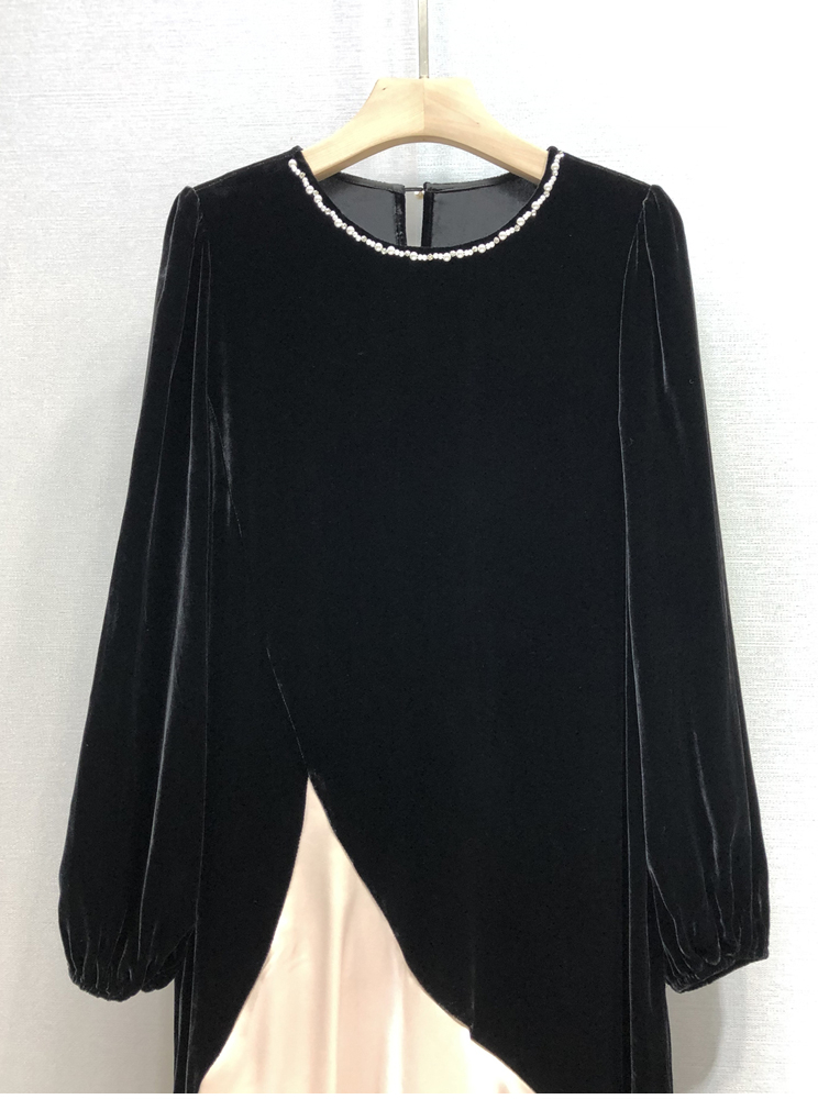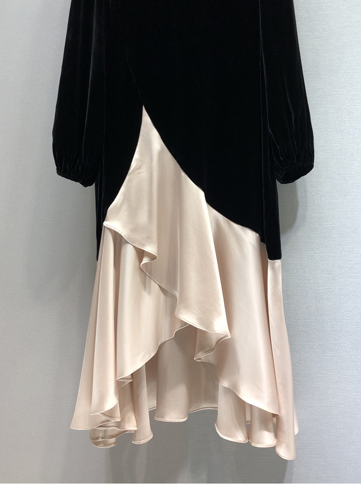 外贸专柜撤回新款女装灯笼袖荷叶边真丝丝绒连衣裙女欧货撞色长裙