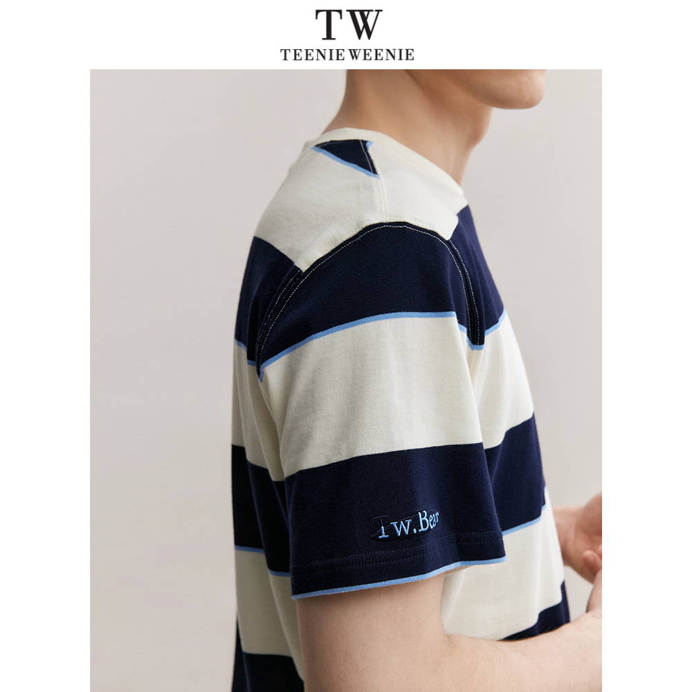 TeenieWeenie小熊男装条纹T恤男2024年夏季新款休闲圆领短袖情侣T