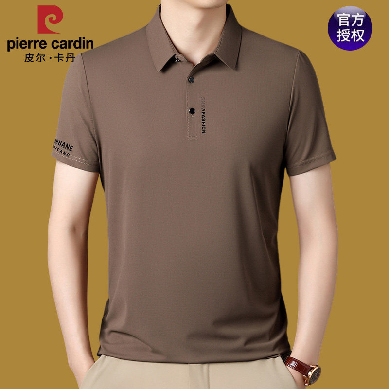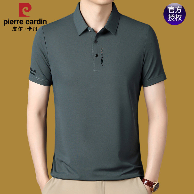 皮尔卡丹夏季冰丝polo衫冰蚕丝短袖t恤男中年薄款无痕速干纯色T恤