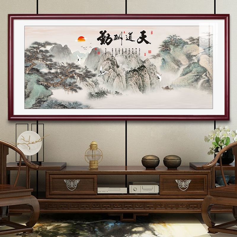 天道酬勤挂画水墨画中式客厅装饰画老板办公室茶室字画大气山水画
