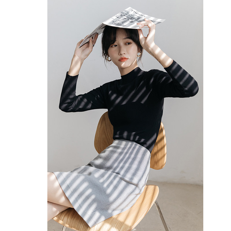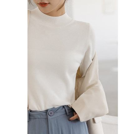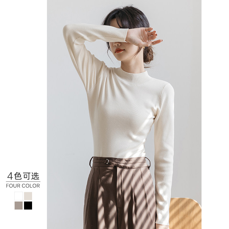 半高领打底针织衫女2021秋冬内搭上衣修身百搭套头黑白色长袖毛衣