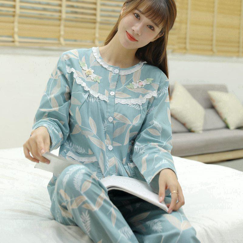 纯棉睡衣女春秋季长袖薄款梭织棉家居服日系气质开衫春夏棉布套装