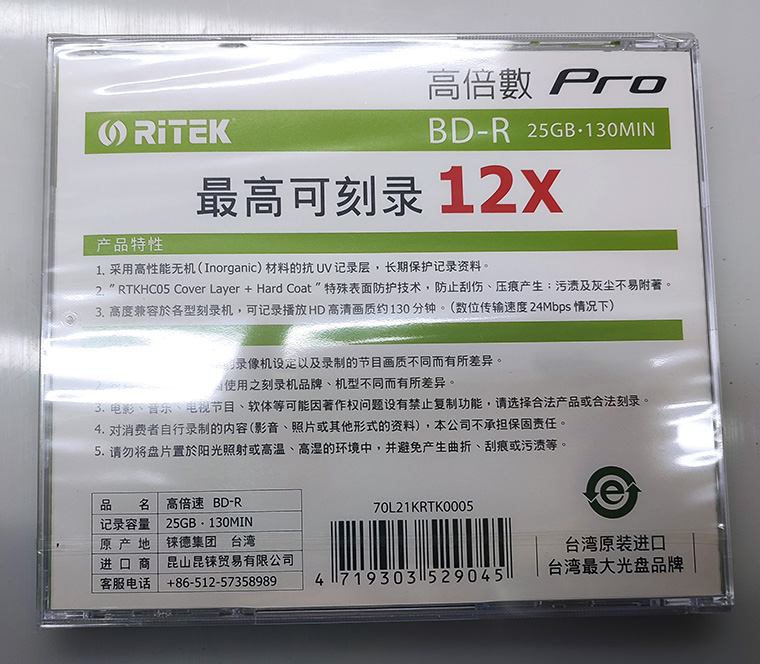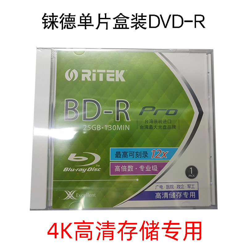 铼德RITEK单片盒装25G BD-R 空白蓝光刻录光盘4K高清存储资料光碟