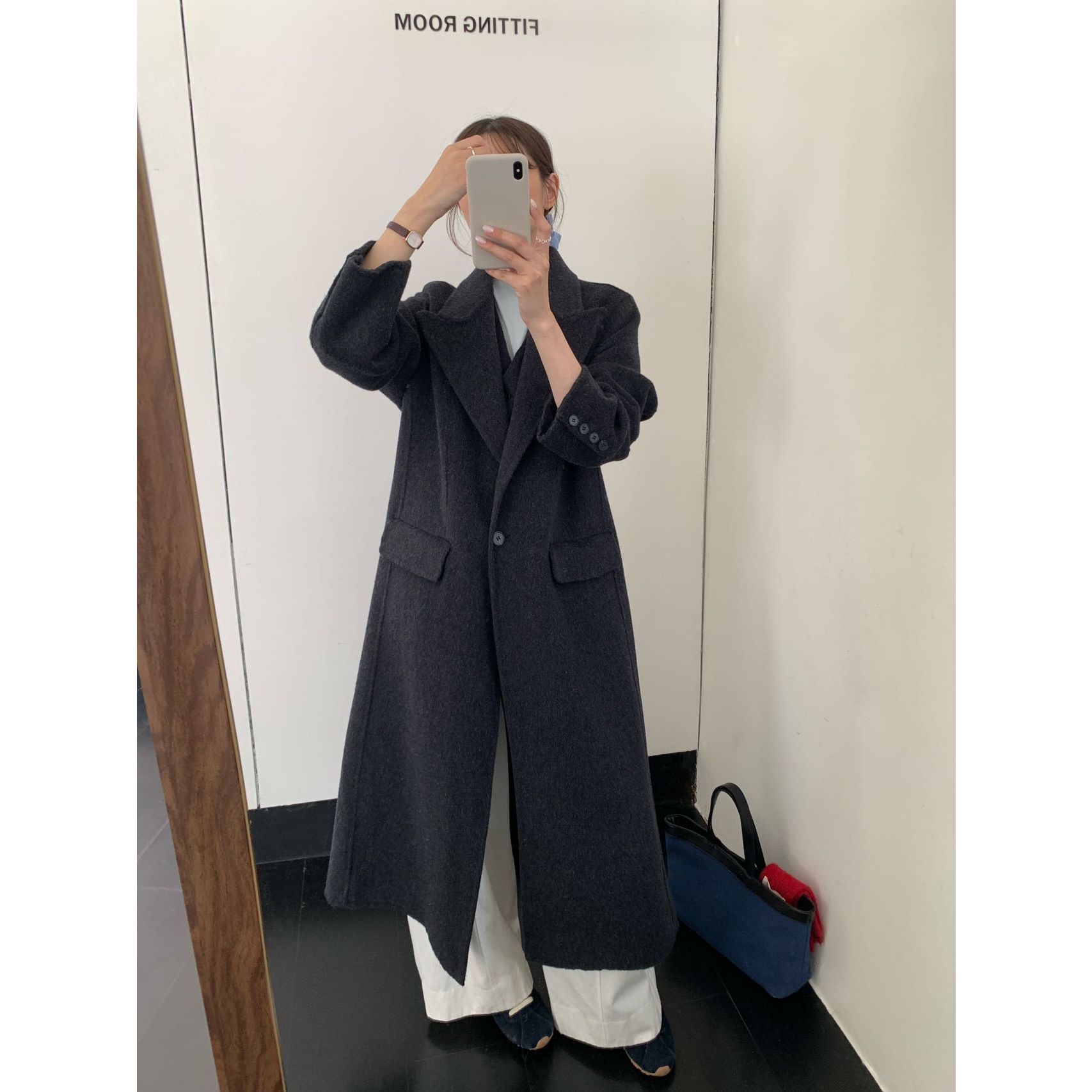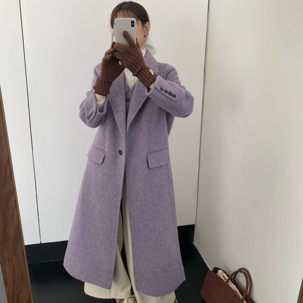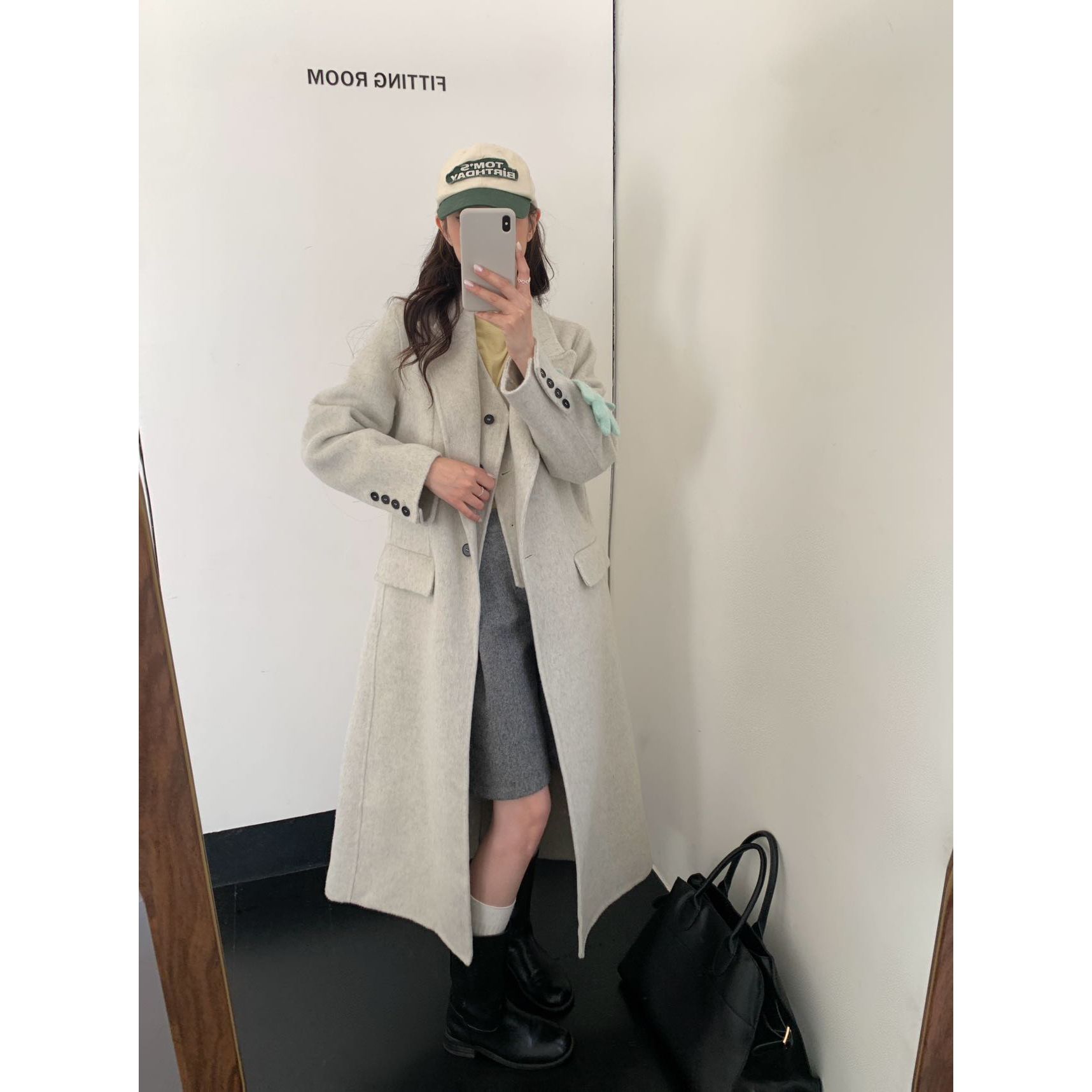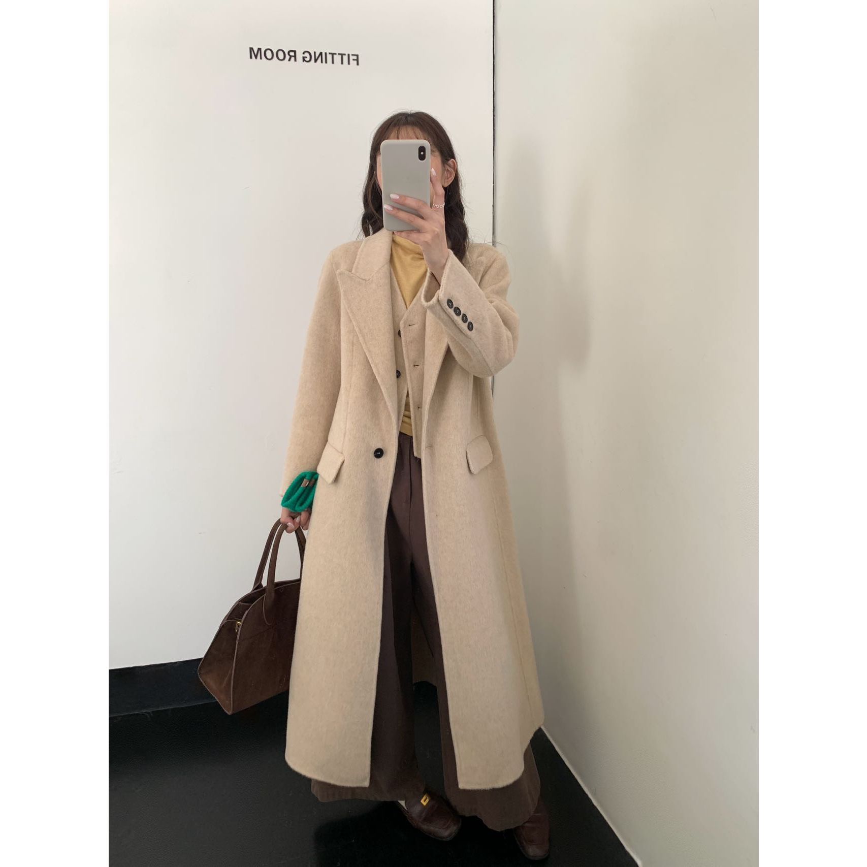 韩系气质西装领2025秋冬新款羊绒大衣单排扣中长款毛呢外套