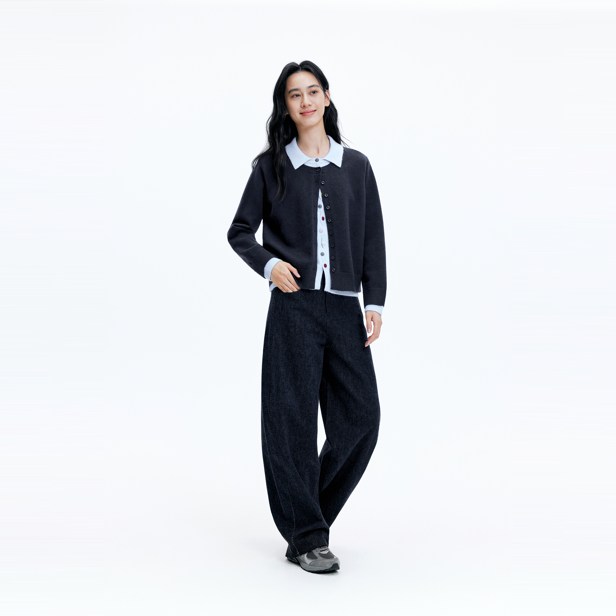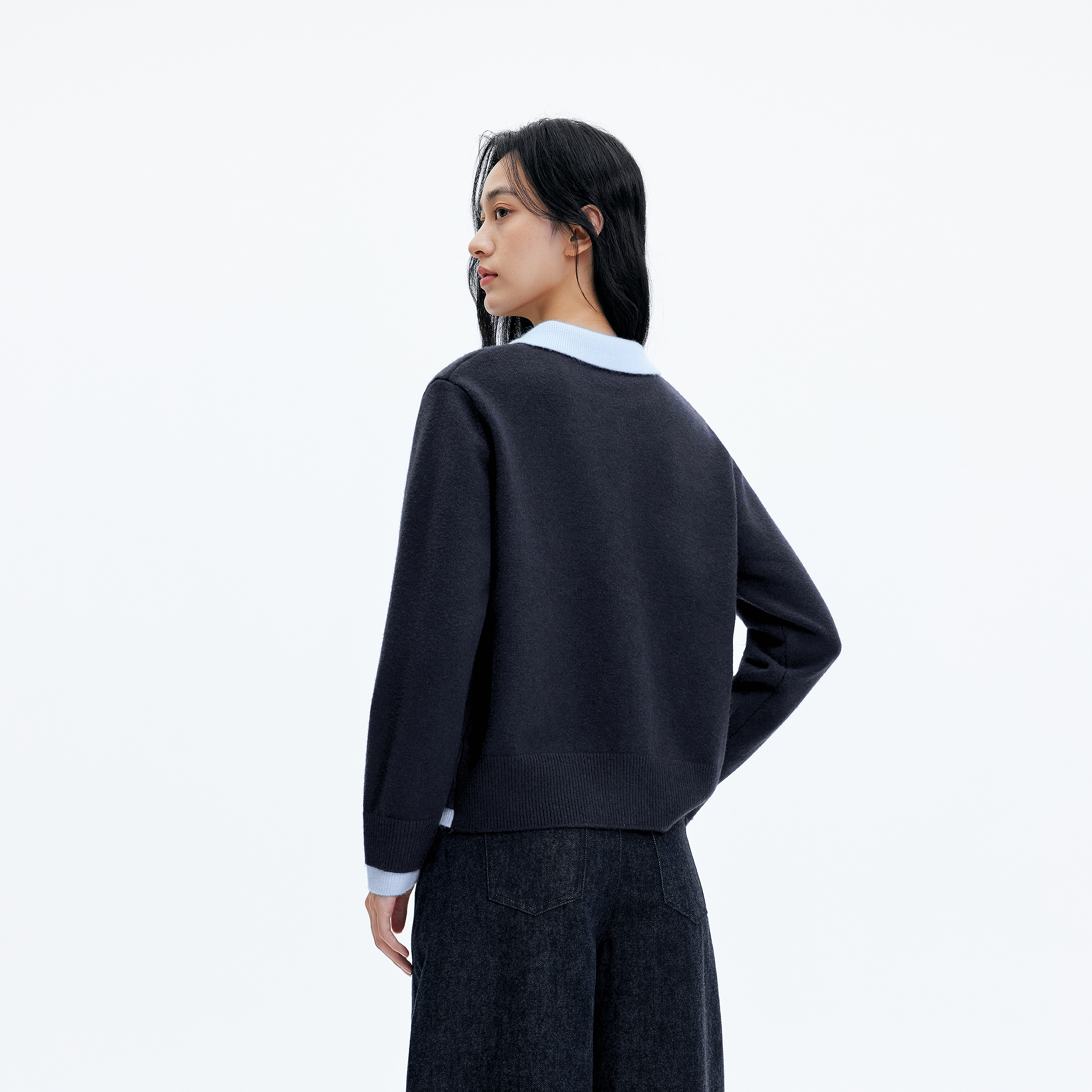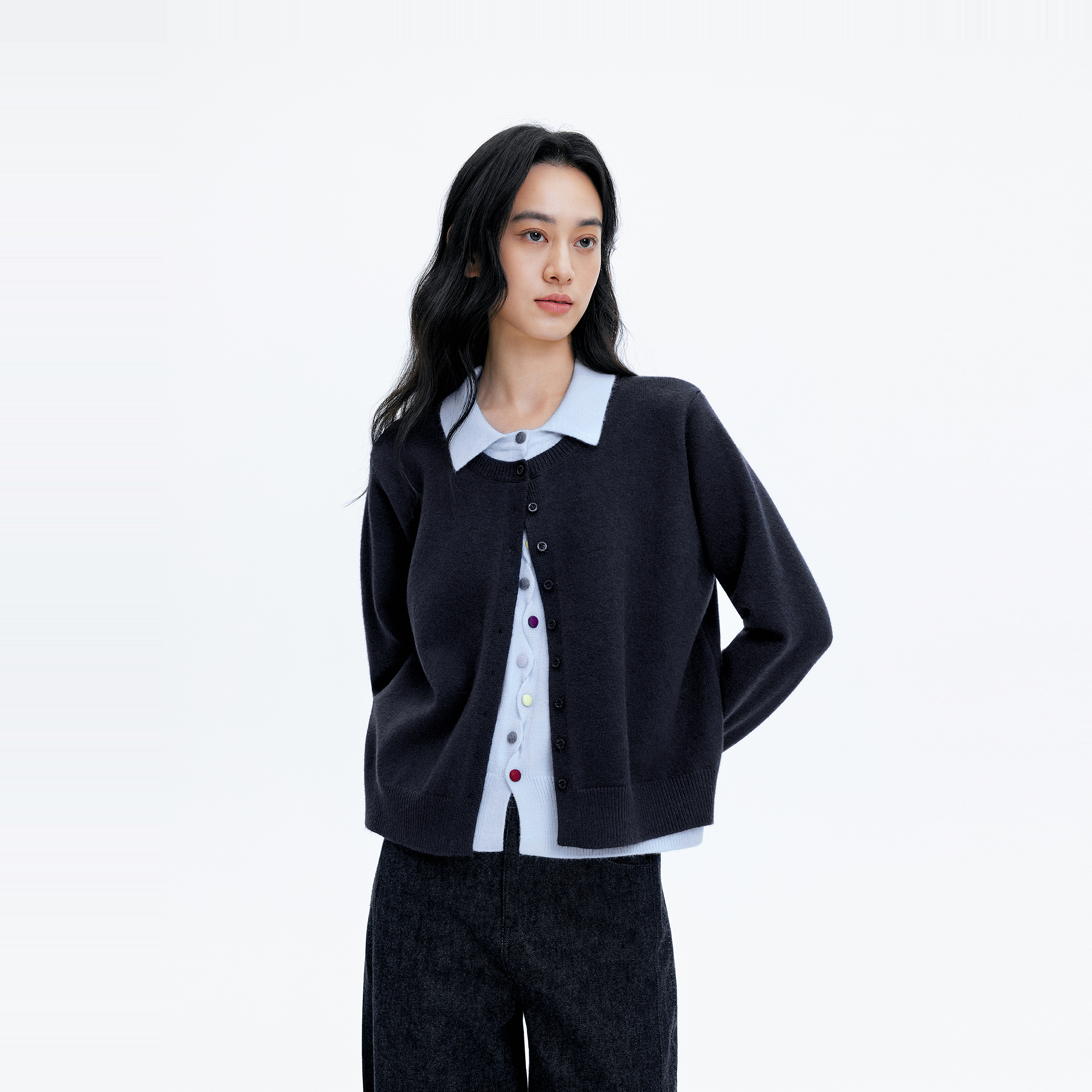 飞鸟和新酒假两件拼色开衫针织衫女毛衣2025秋季新款休闲套头衫