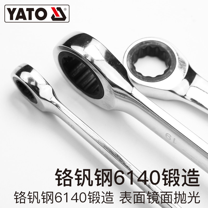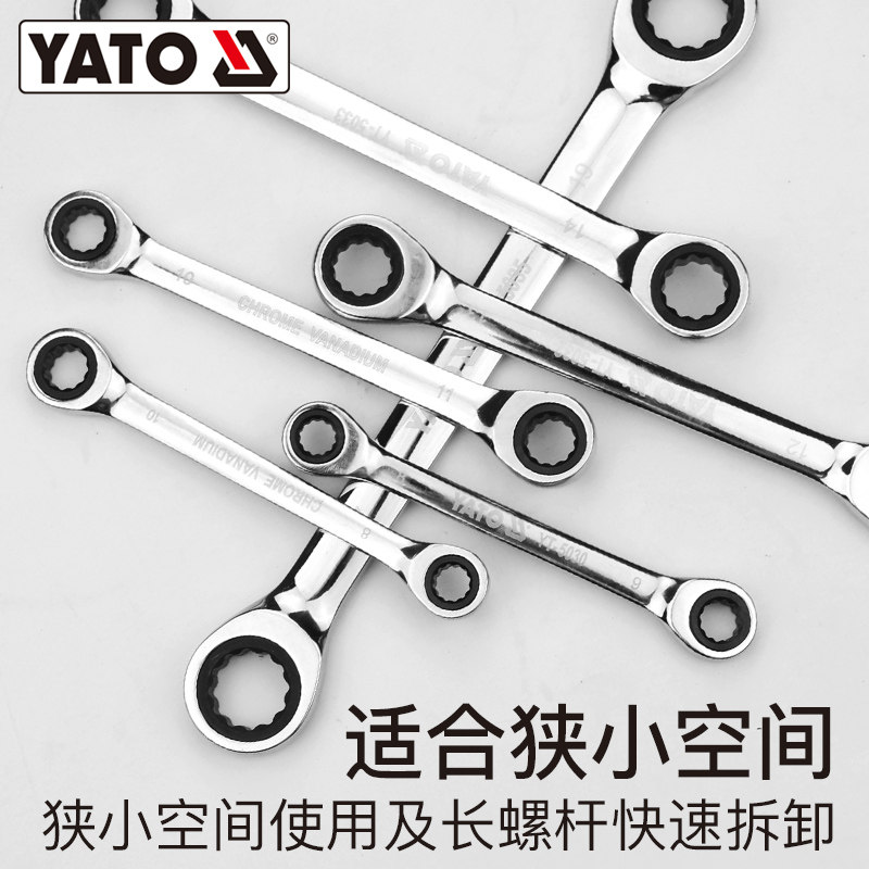 YATO双头两用棘轮梅花扳手8-19mmCRV工业级快速自动汽修刺轮板子