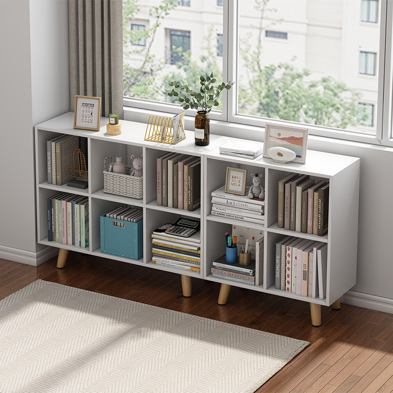 飘窗书架落地置物架小型收纳柜子卧室客厅实木腿格子柜书柜置物柜