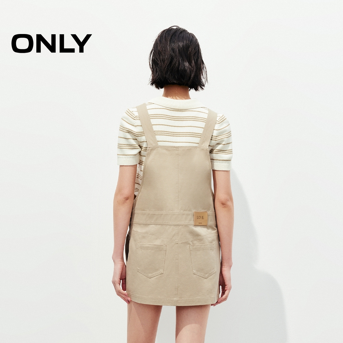 o区绫致ONLY2025春夏纯棉条纹短袖针织套装工装直筒背带连衣裙女