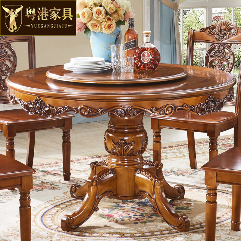 极速粤港家具 欧式实木餐桌餐厅成套家具P组合美式圆桌饭桌组合