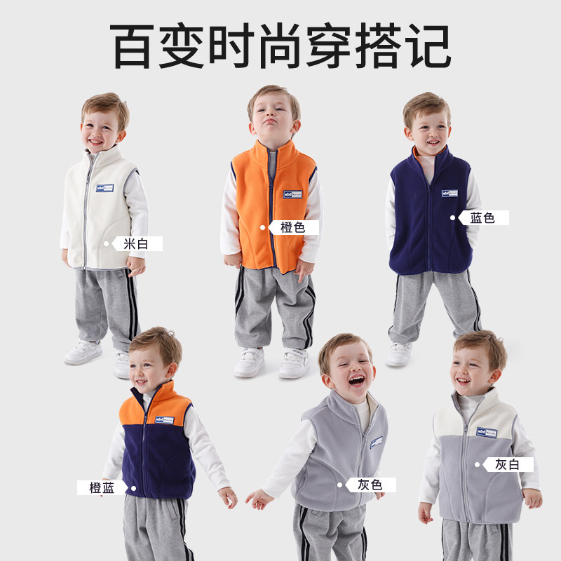 男童摇粒绒马甲儿童春秋冬宝宝抓绒背心外穿保暖坎肩立领内搭校服