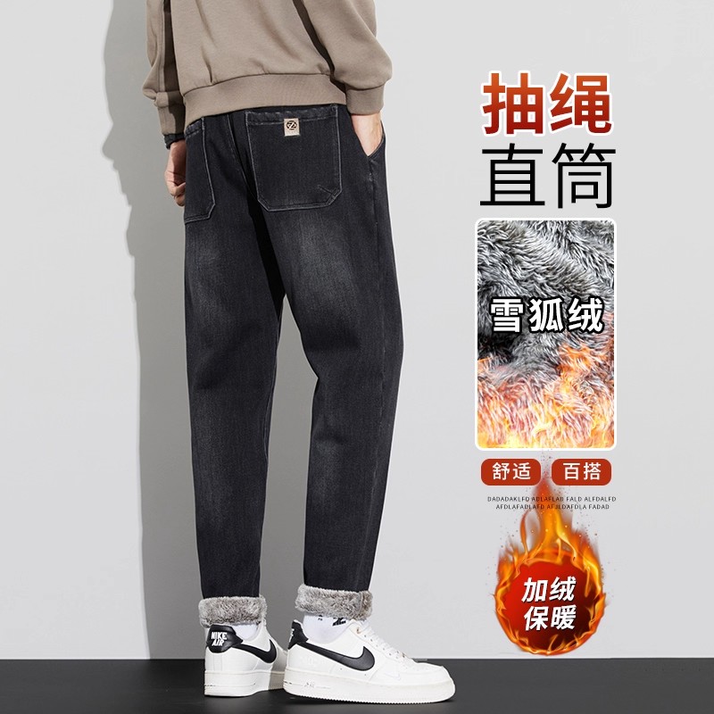 男士加绒裤子冬季加厚羊羔绒裤子牛仔裤男2025新款松紧腰冬天棉裤