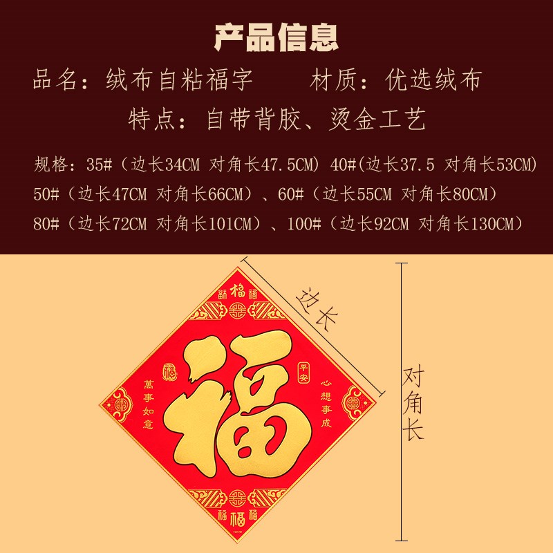 高档绒布超大福字门贴自粘多规格新年装饰农村大门公司酒店斗方贴