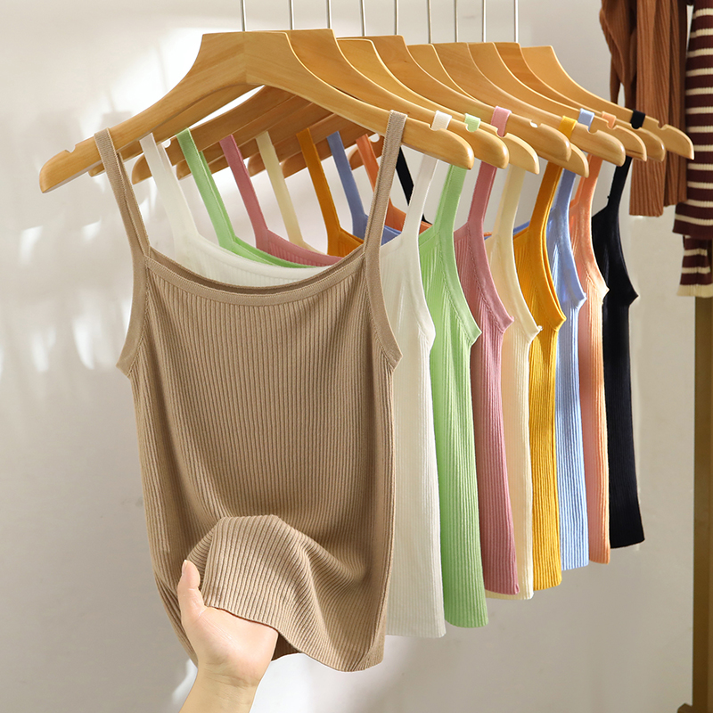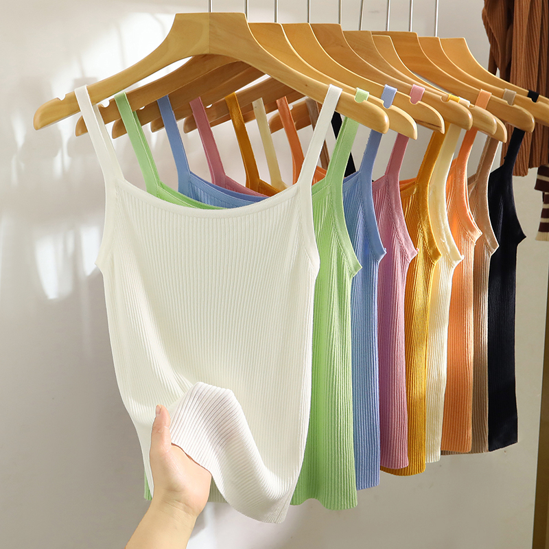 现货速发一字领小吊带背心春夏外穿内搭无袖短款抹胸上衣针织打底